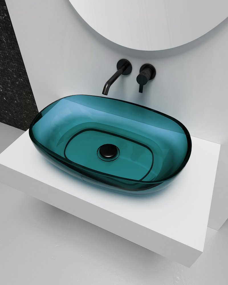 Раковина-чаша прозрачная Abber Kristall 60 см AT2805Aquamarin, материал полиэфирная смола, цвет бирюзовый. Донный клапан приобретается отдельно.