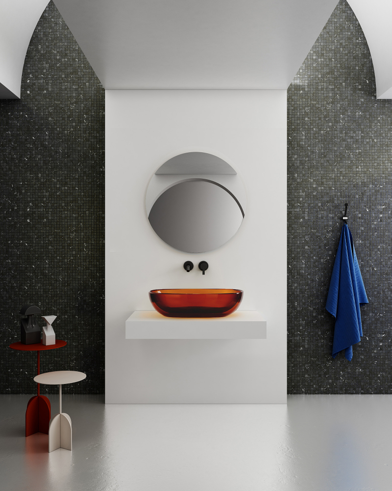 Раковина-чаша прозрачная Abber Kristall 60 см AT2805Opal, материал полиэфирная смола, цвет красный.