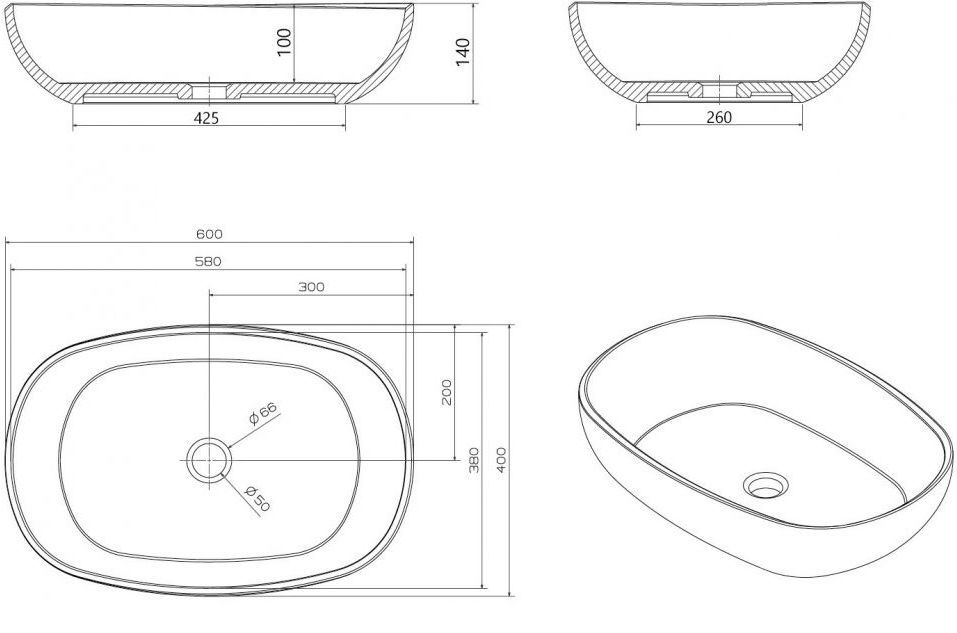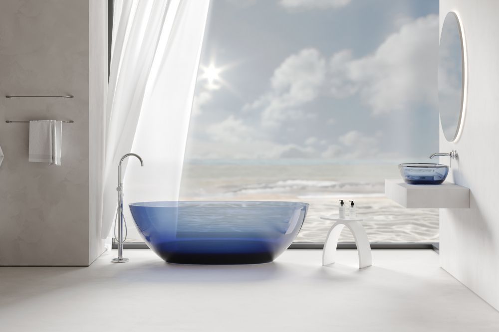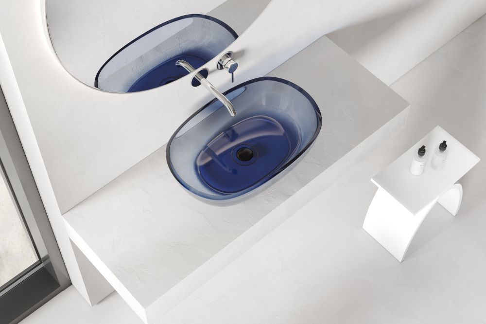Раковина-чаша прозрачная Abber Kristall 60 см AT2805Saphir, материал полиэфирная смола, цвет синий.