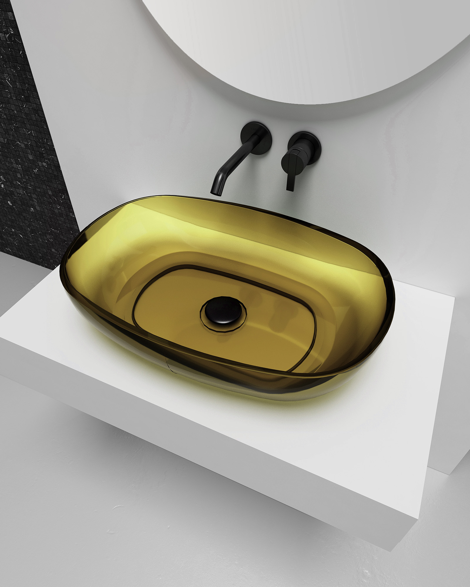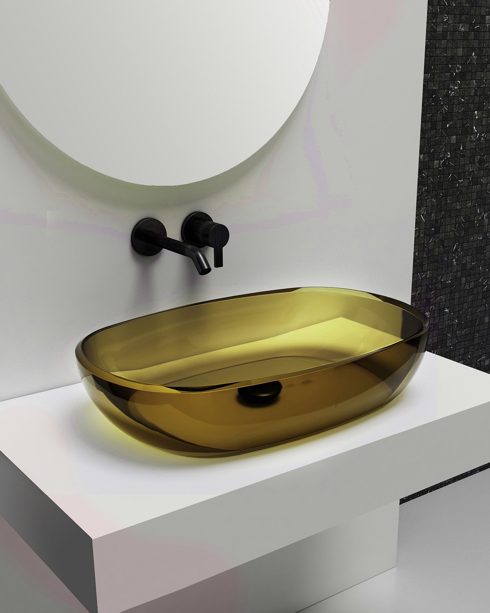 Раковина-чаша прозрачная Abber Kristall 60 см AT2805Vesuvian, материал полиэфирная смола, цвет оливковый. Донный клапан приобретается отдельно.