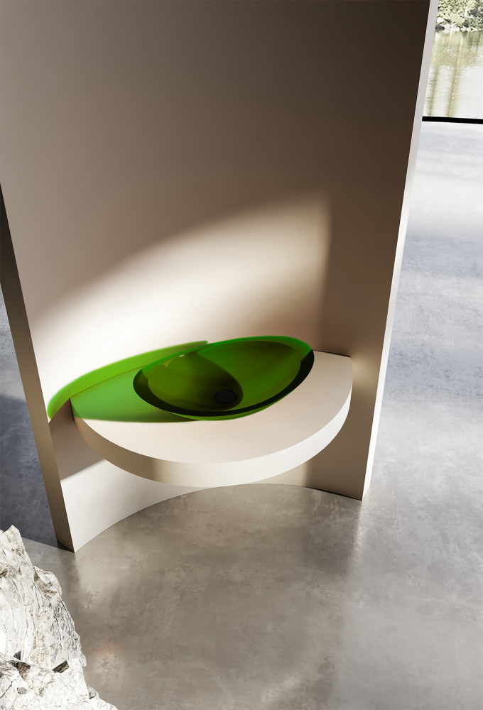 Раковина-чаша прозрачная Abber Kristall 60 см AT2808Emerald с донным клапаном, материал полиэфирная смола, цвет зеленый.