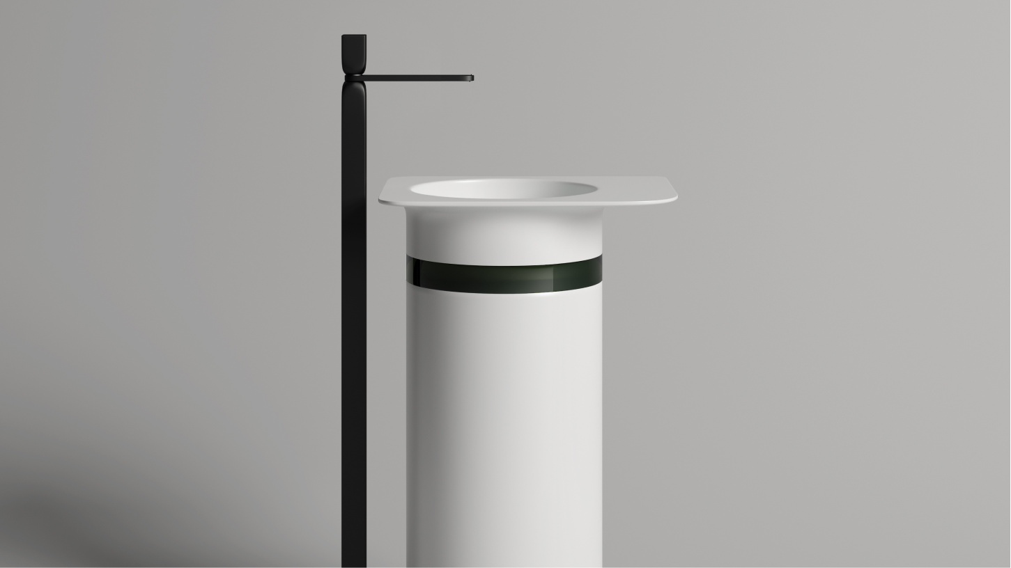 Раковина NINFEA в напольном и накладном исполнении отличается точно выверенными пропорциями и элегантным контрастом прямых и закруглённых линий. Словно лист кувшинки на водной глади, она восхищает своим необычным внешним видом. Изящное крыло станет удобной дополнительной поверхностью для аксессуаров. Круглая вставка в напольной раковине, выполненная из материала S-Shine на основе полупрозрачной эпоксидной смолы, добавляет лёгкости и изящества.