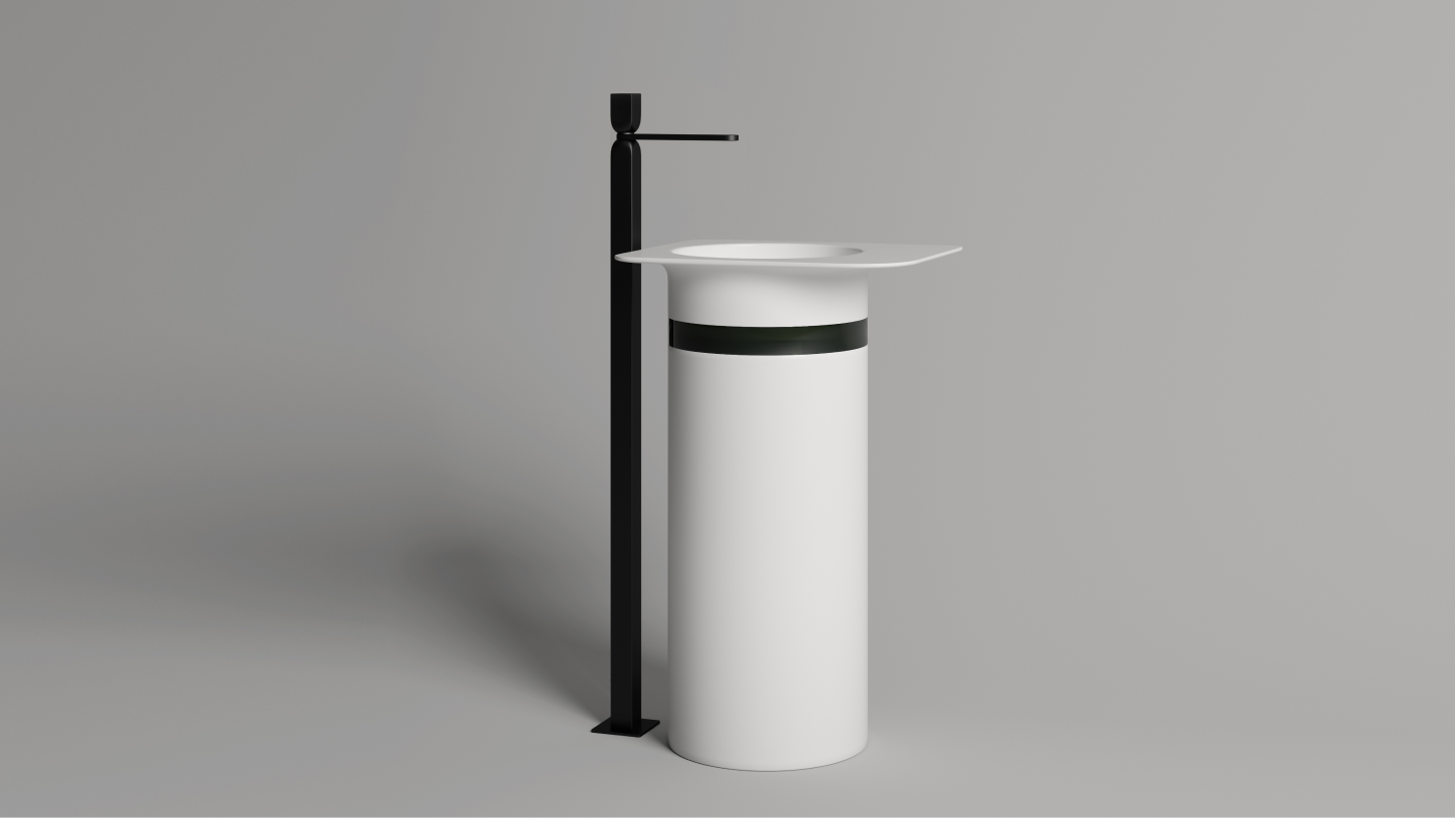 Накладная раковина со скрытым донным клапаном может располагаться на любой поверхности, а также на специальной консоли, разработанной Маурицио Мандзони для коллекции NINFEA.
