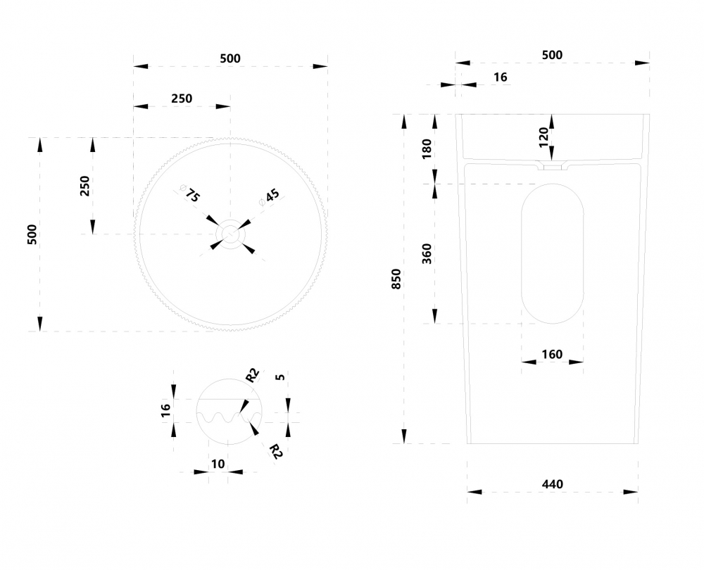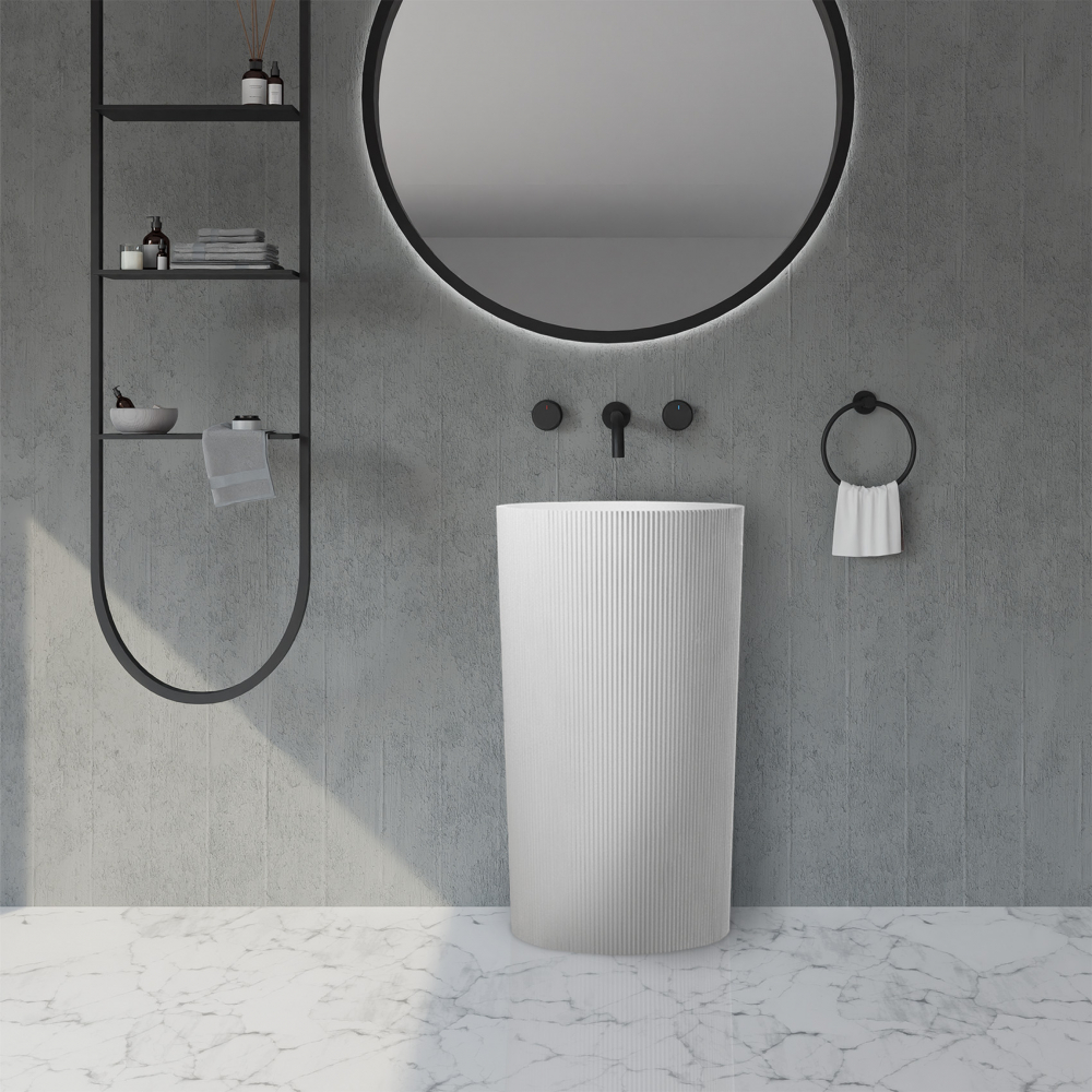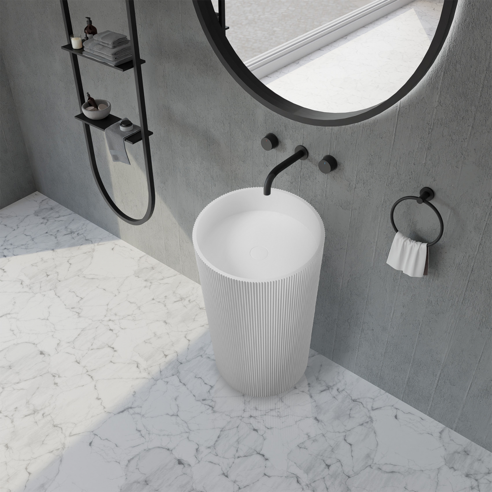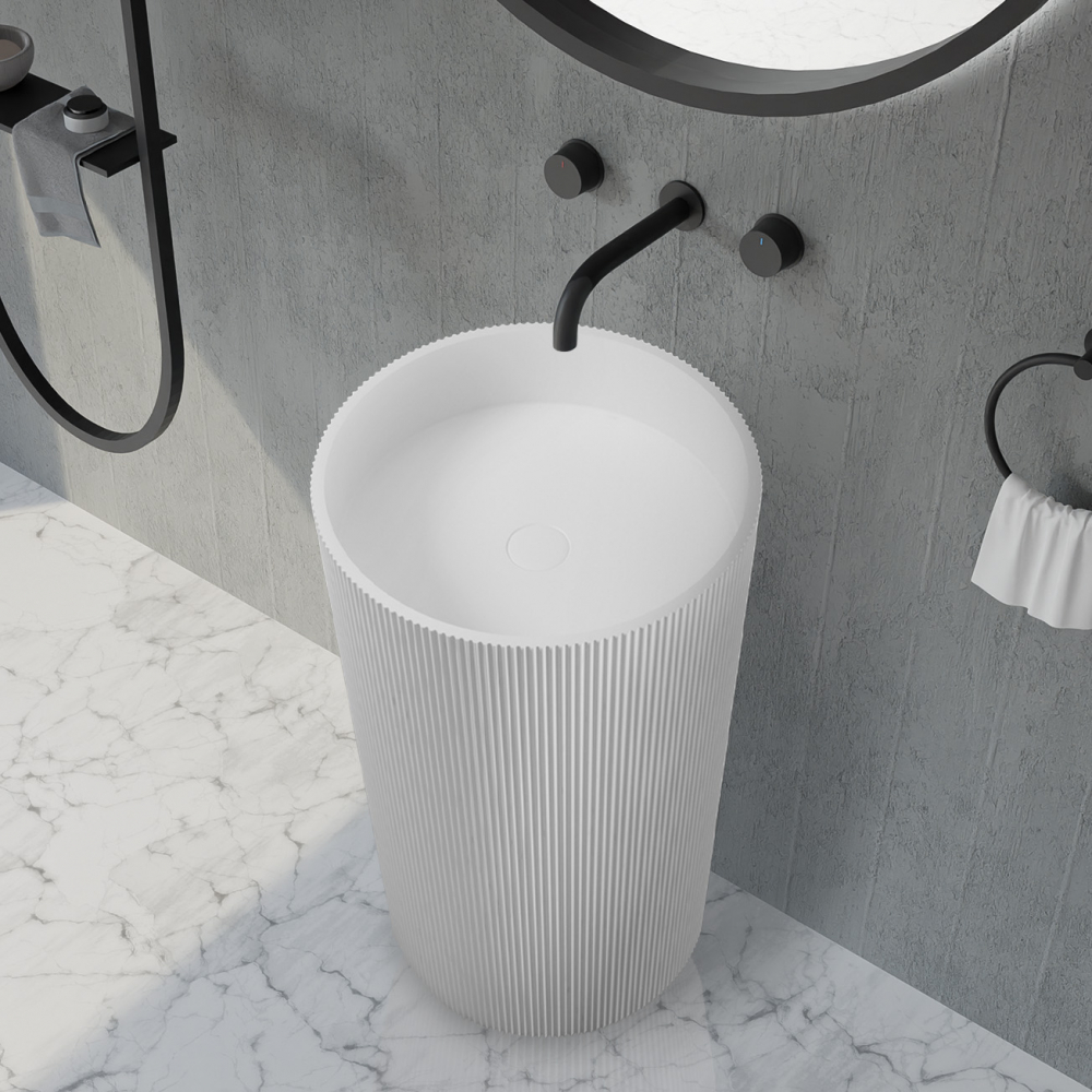 Раковина напольная Abber Stein 50 см AS2501-H с донным клапаном, материал искусственный камень, цвет белый матовый.