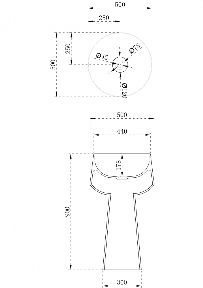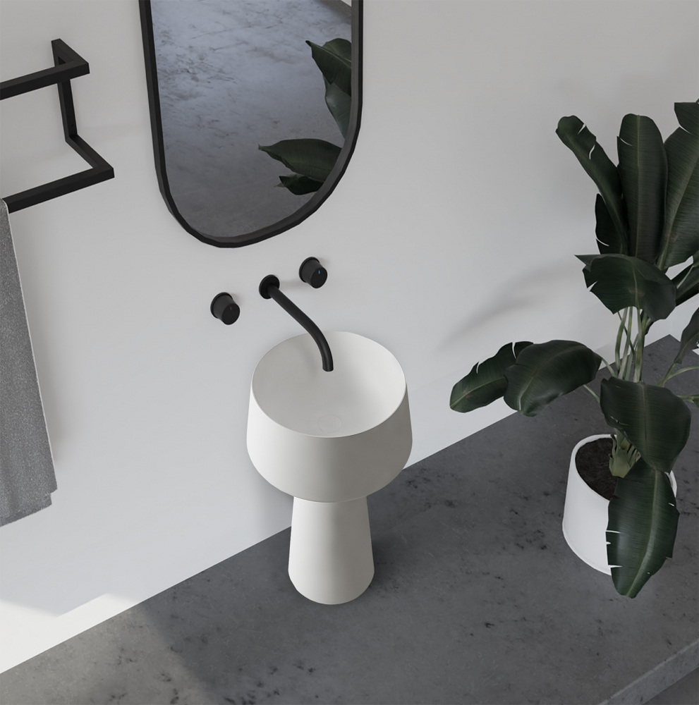 Раковина напольная Abber Stein 50 см AS2508 с донным клапаном, материал искусственный камень, цвет белый матовый.