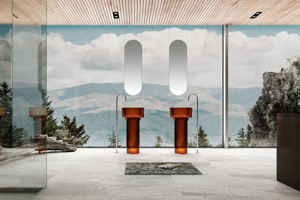 Раковина напольная прозрачная Abber Kristall 45 см AT2702Opal, материал полиэфирная смола, цвет красный.