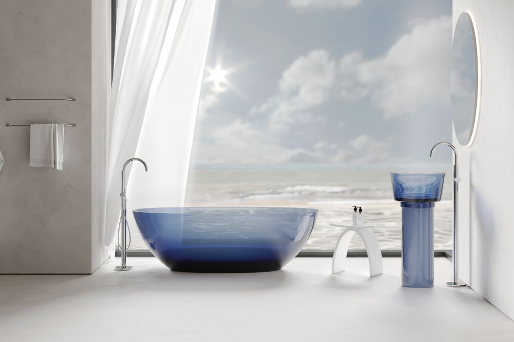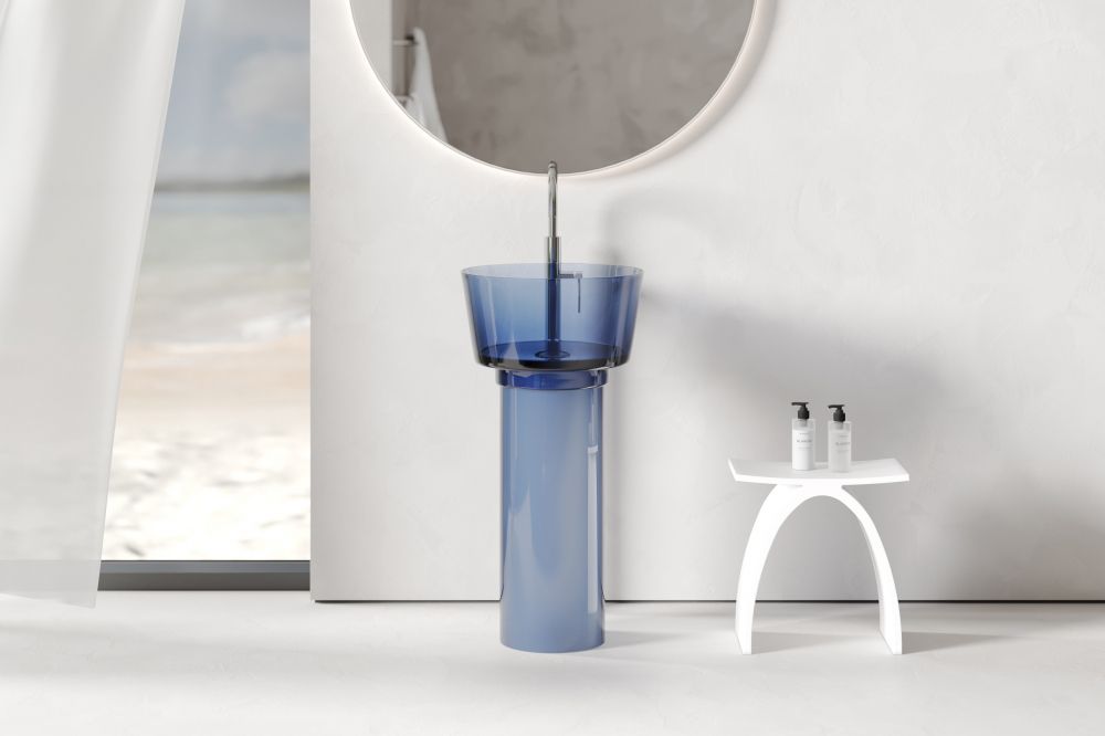 Раковина напольная прозрачная Abber Kristall 45 см AT2702Saphir, материал полиэфирная смола, цвет синий.