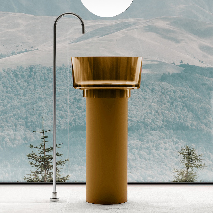 Раковина напольная прозрачная Abber Kristall 45 см AT2702Vesuvian-H, материал полиэфирная смола, цвет оливковый. Донный клапан в комплект не входит и приобретается отдельно.