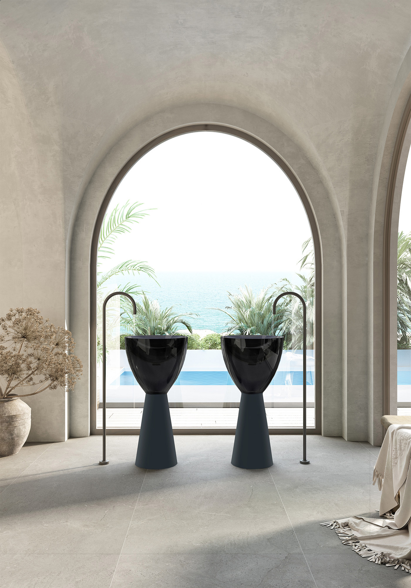 Раковина напольная прозрачная Abber Kristall 45 см AT2703Onyx-Black, чёрный/чёрный матовый
