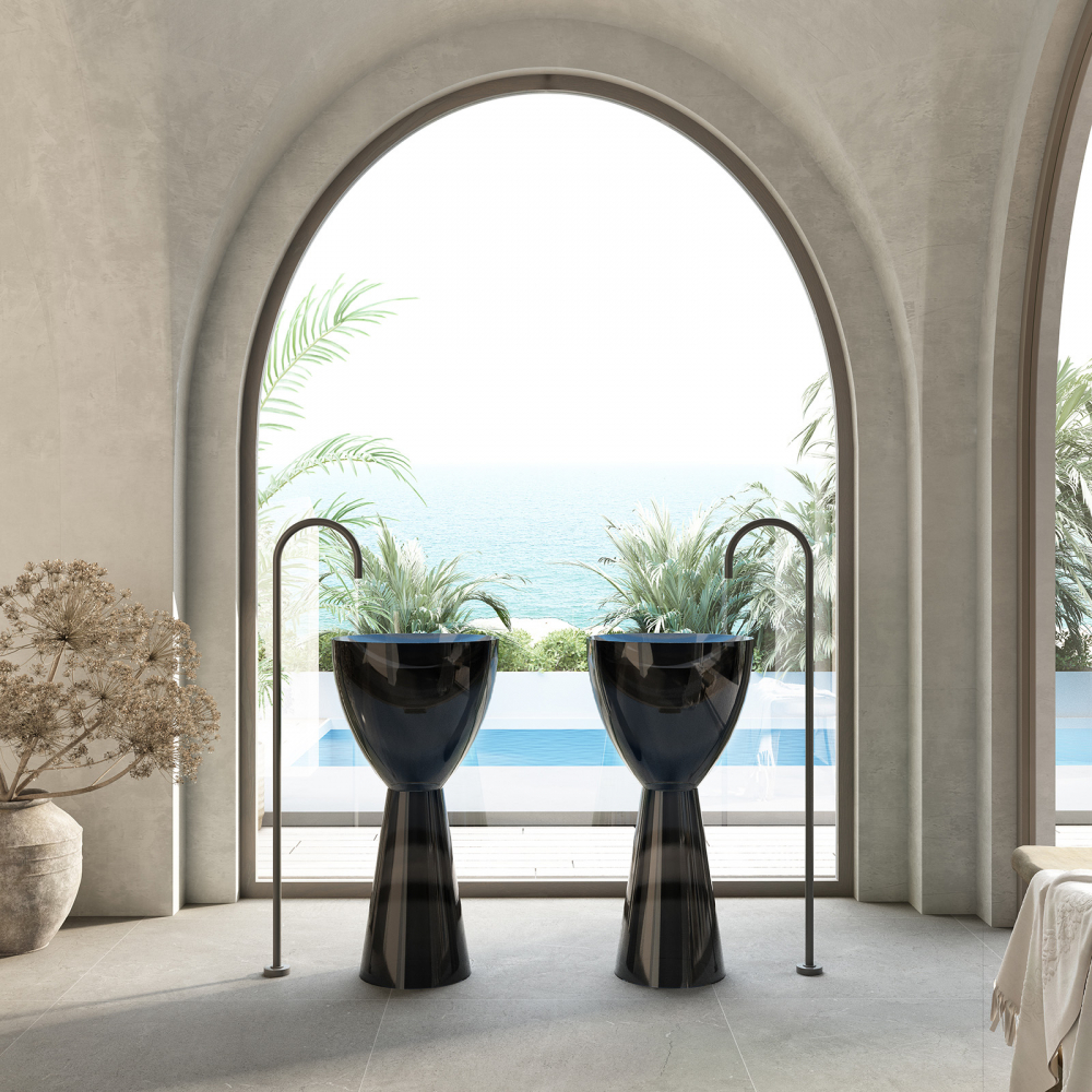Раковина напольная прозрачная Abber Kristall 45 см AT2703Onyx, материал полиэфирная смола, цвет черный.