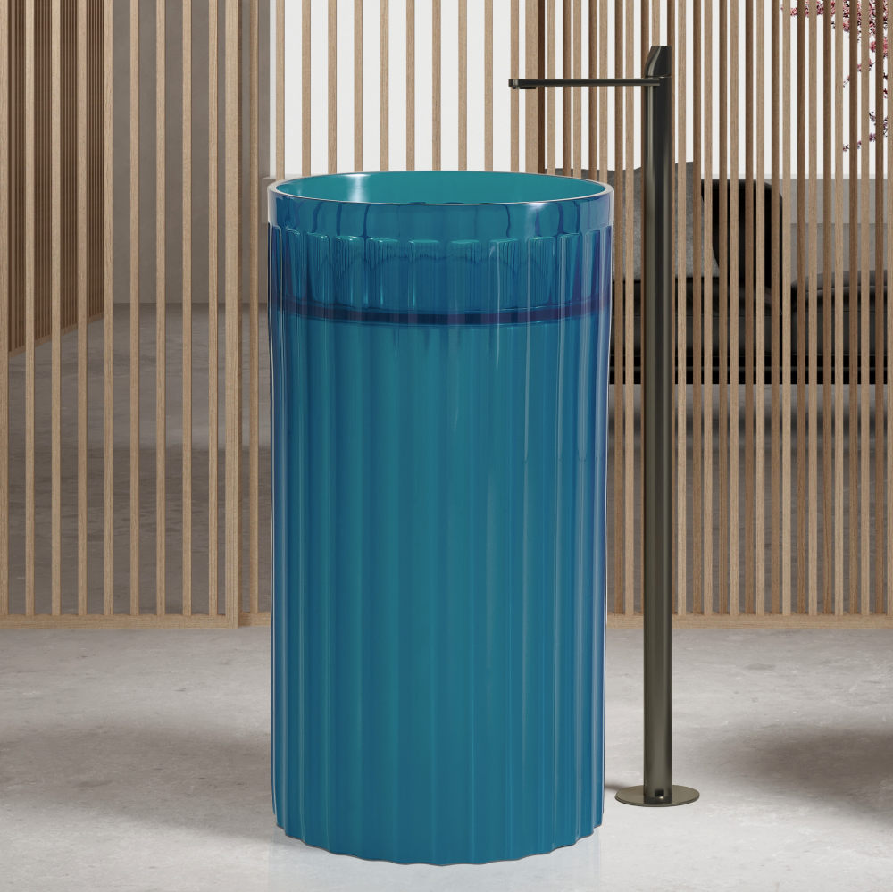 Представьте ванную комнату, где каждый предмет становится произведением искусства. Именно такую атмосферу создаёт круглая отдельностоящая раковина Abber Kristall AT2709Aquamarin. Её прозрачная структура из высококачественной полиэфирной смолы переливается изысканным бирюзовым цветом, превращая обыденную сантехнику в визуальный акцент интерьера.