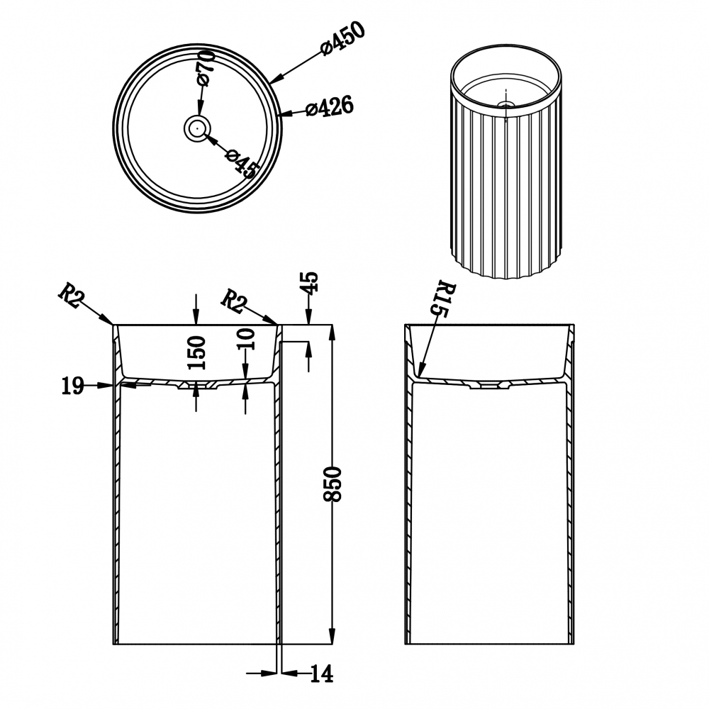 - Отдельностоящая конструкция открывает широкие возможности для планировки: раковину можно разместить как в центре помещения, так и у стены, создавая уникальный дизайн ванной комнаты.
