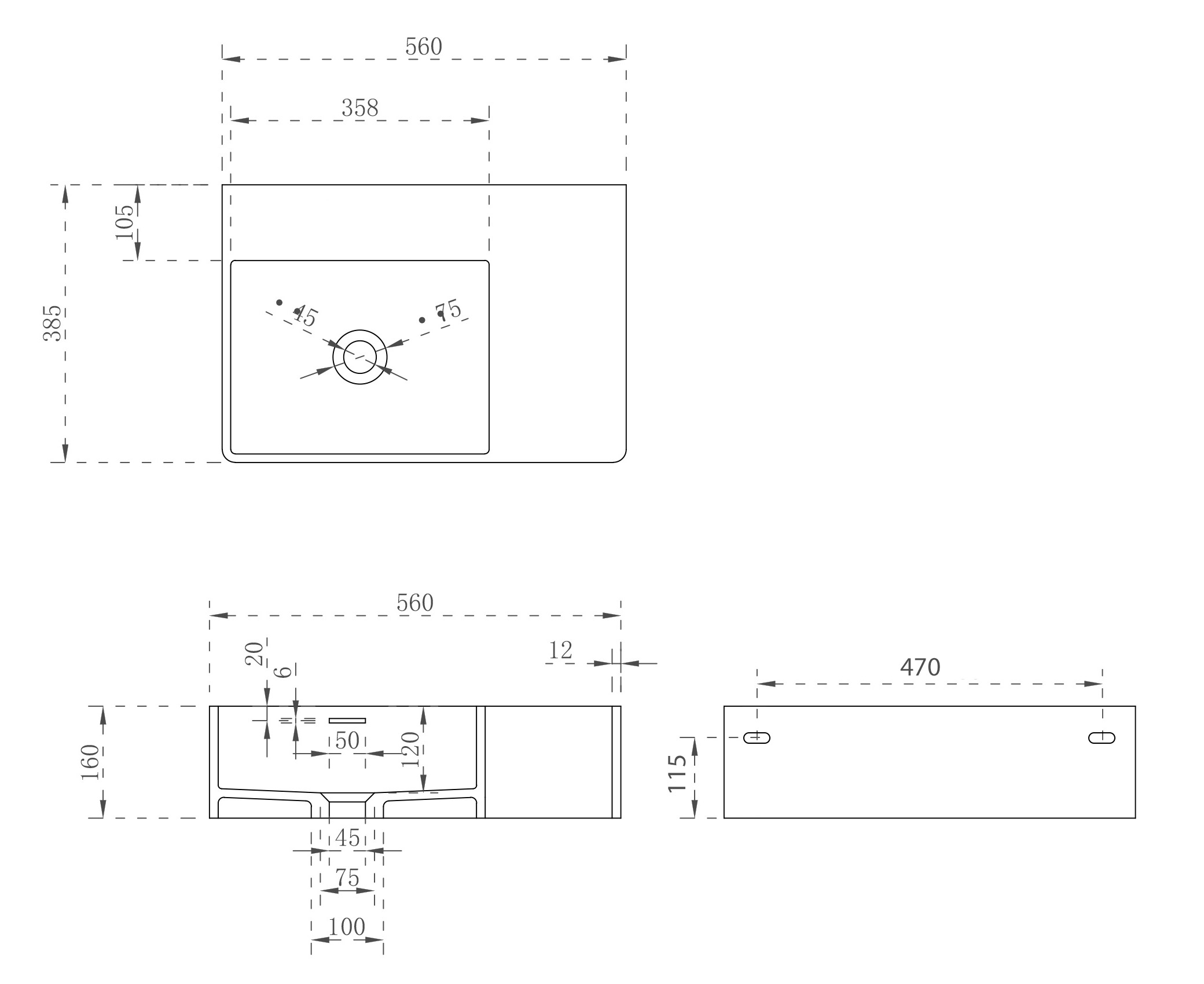 Раковина подвесная Abber Stein 56 см AS2644 L с донным клапаном, цвет белый матовый.