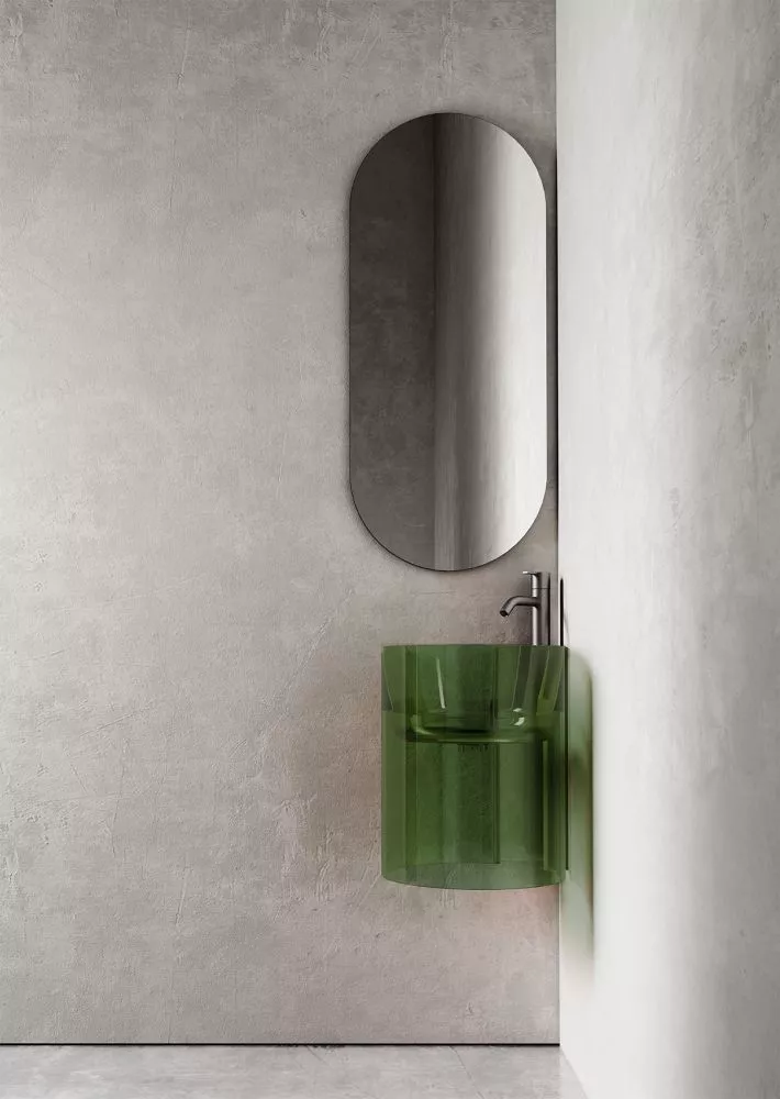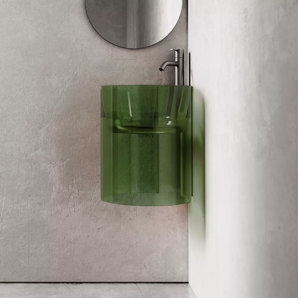 Раковина подвесная прозрачная Abber Kristall 42 см AT2705Emerald, материал полиэфирная смола, цвет зеленый.