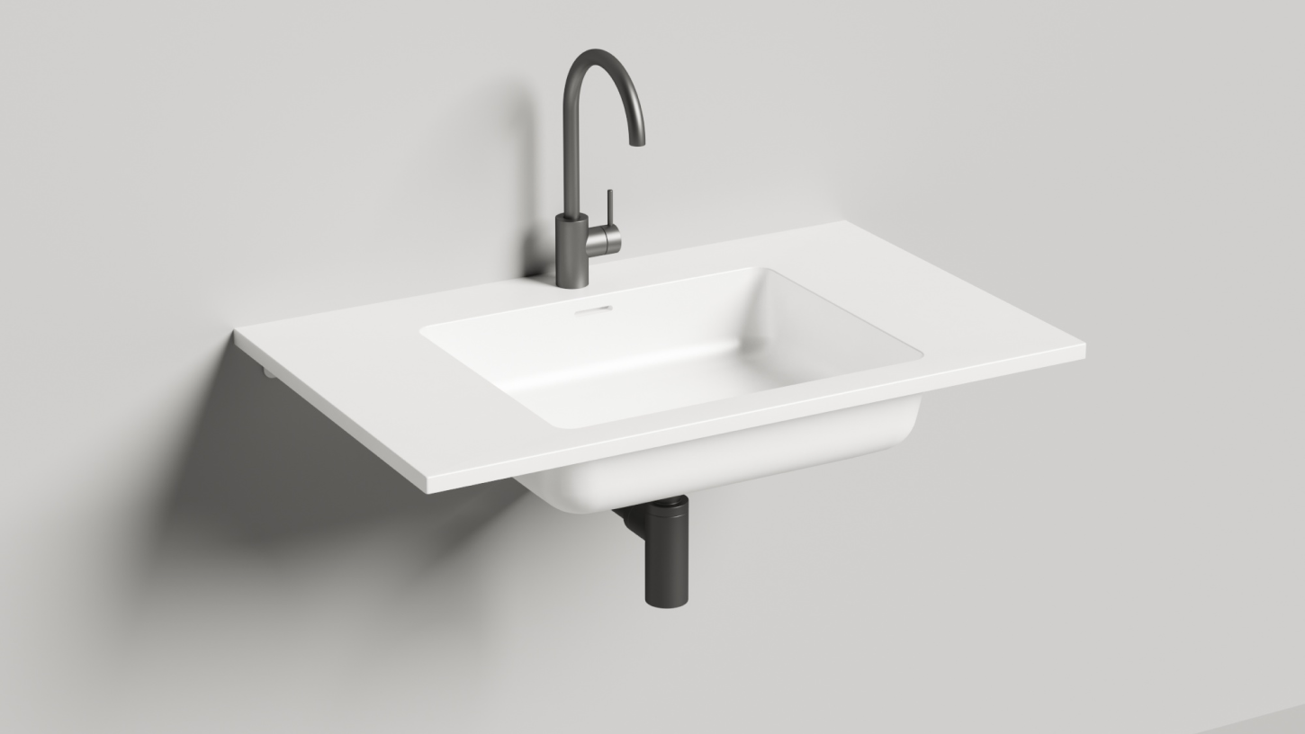 Серия подвесных раковин выполнена в материале S-Stone. Изготовленные по технологии Solid Surface, раковины имеют полностью монолитную структуру по всей толщине изделия. Каждая раковина ONDA включает в себя удобную чашу и столешницу, на которой можно расположить туалетные принадлежности. Возможна подвесная установка с креплением на кронштейны к стене, а также использование раковины для оформления мебели для ванной комнаты по собственным чертежам, с учётом особенностей конкретного помещения.