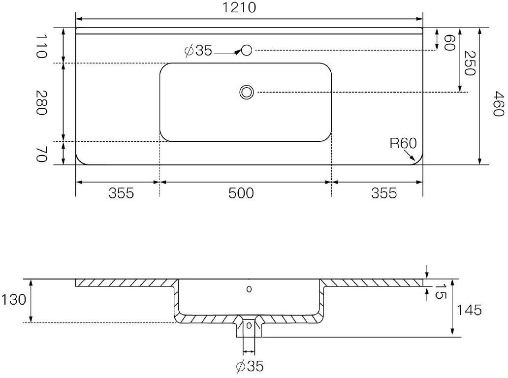 Раковина врезная на столешницу Allen Brau Paris 4.61003.20, размер 1210х460 мм. Цвет белый.