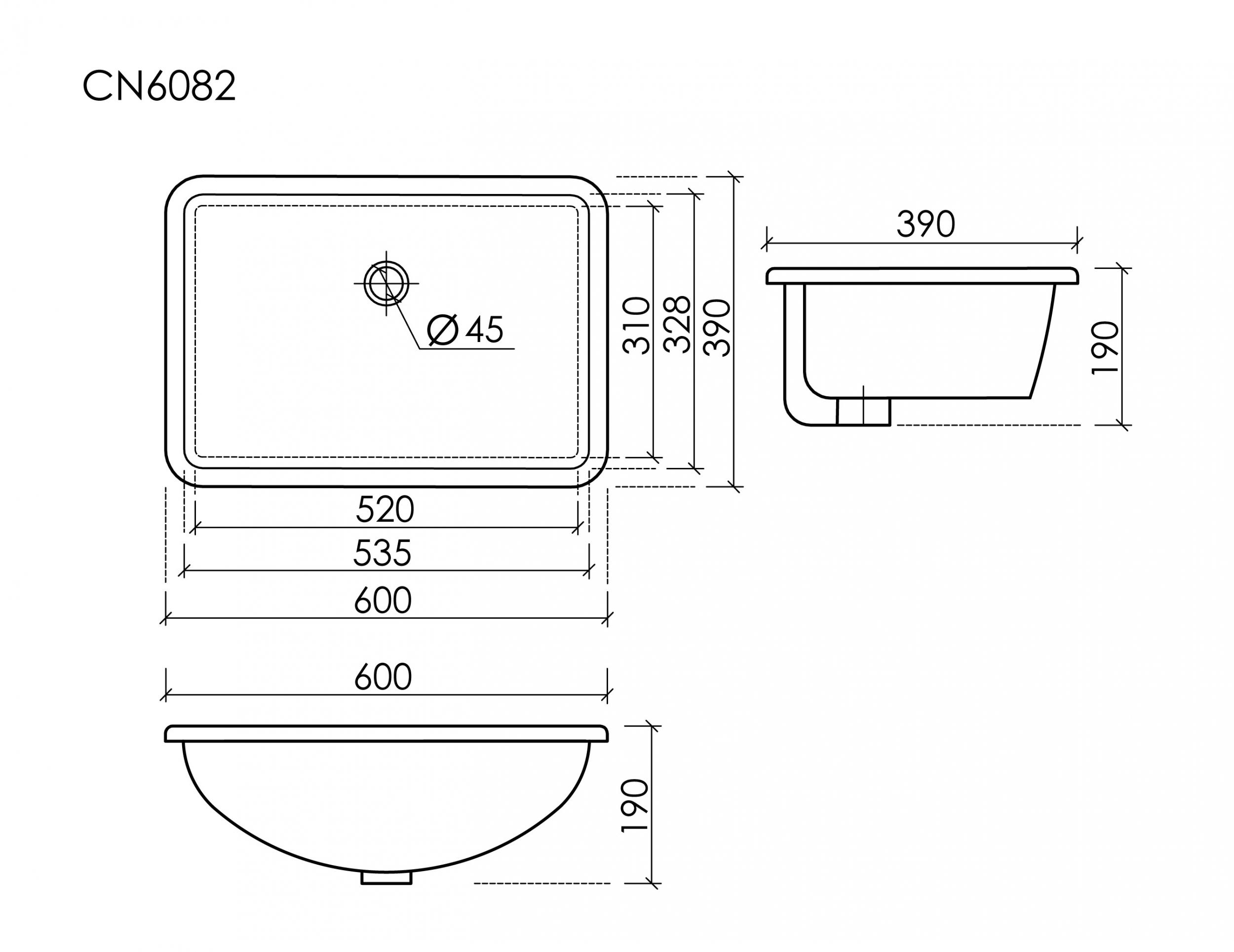 Раковина врезная под столешницу Ceramicanova Era CN6082, размер 600х390х190 мм. Цвет белый.