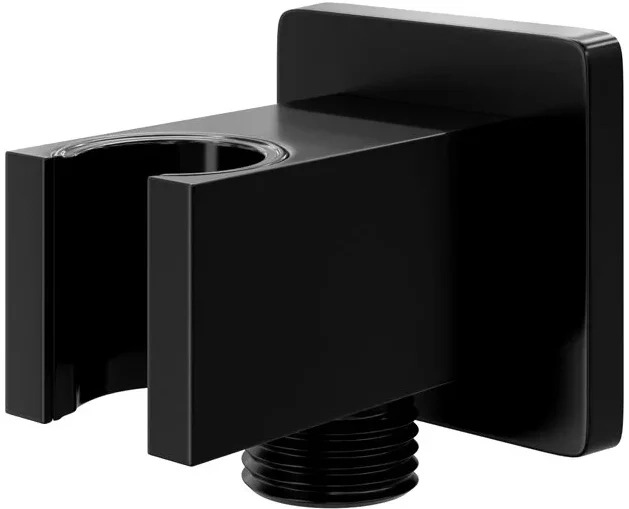 Шланговое подсоединение с держателем Grocenberg GB101BL, материал - латунь, цвет - чёрный матовый.
