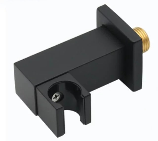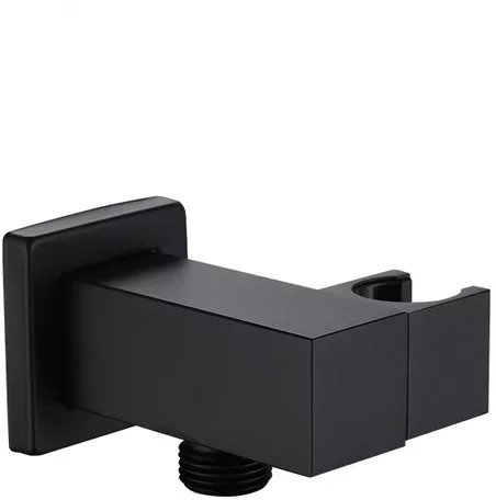 Шланговое подсоединение с держателем Grocenberg GB188BL, материал - латунь, цвет - чёрный матовый.