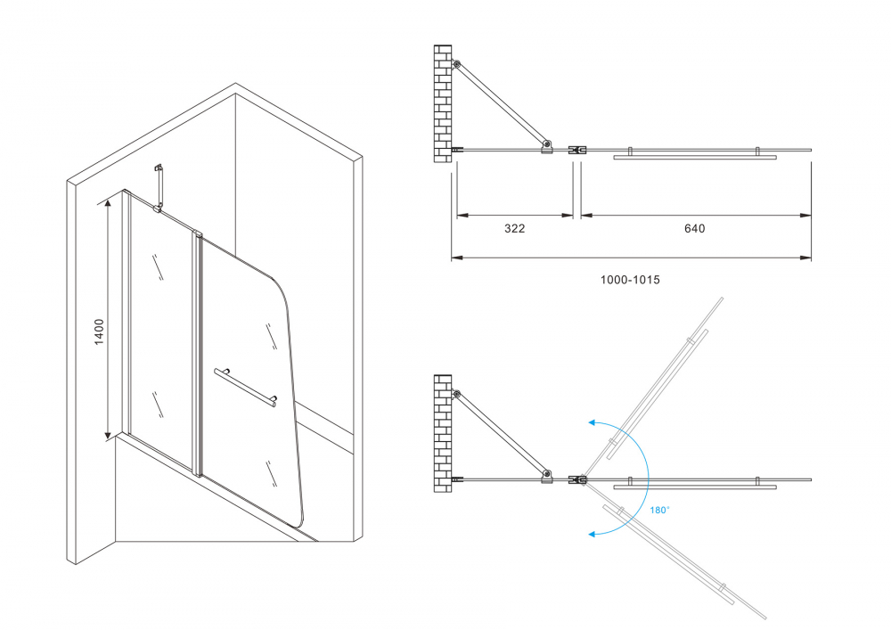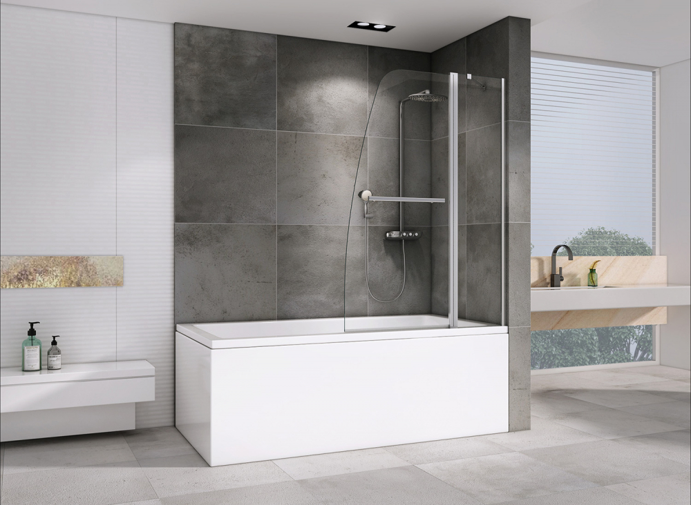- Распашная шторка на ванну