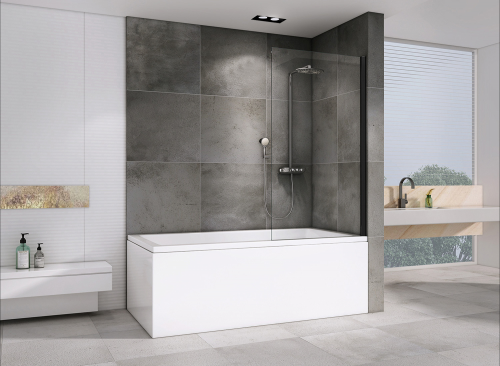 Шторка для ванны Abber Immer Offen 100 см AG71100B, черный/прозрачное