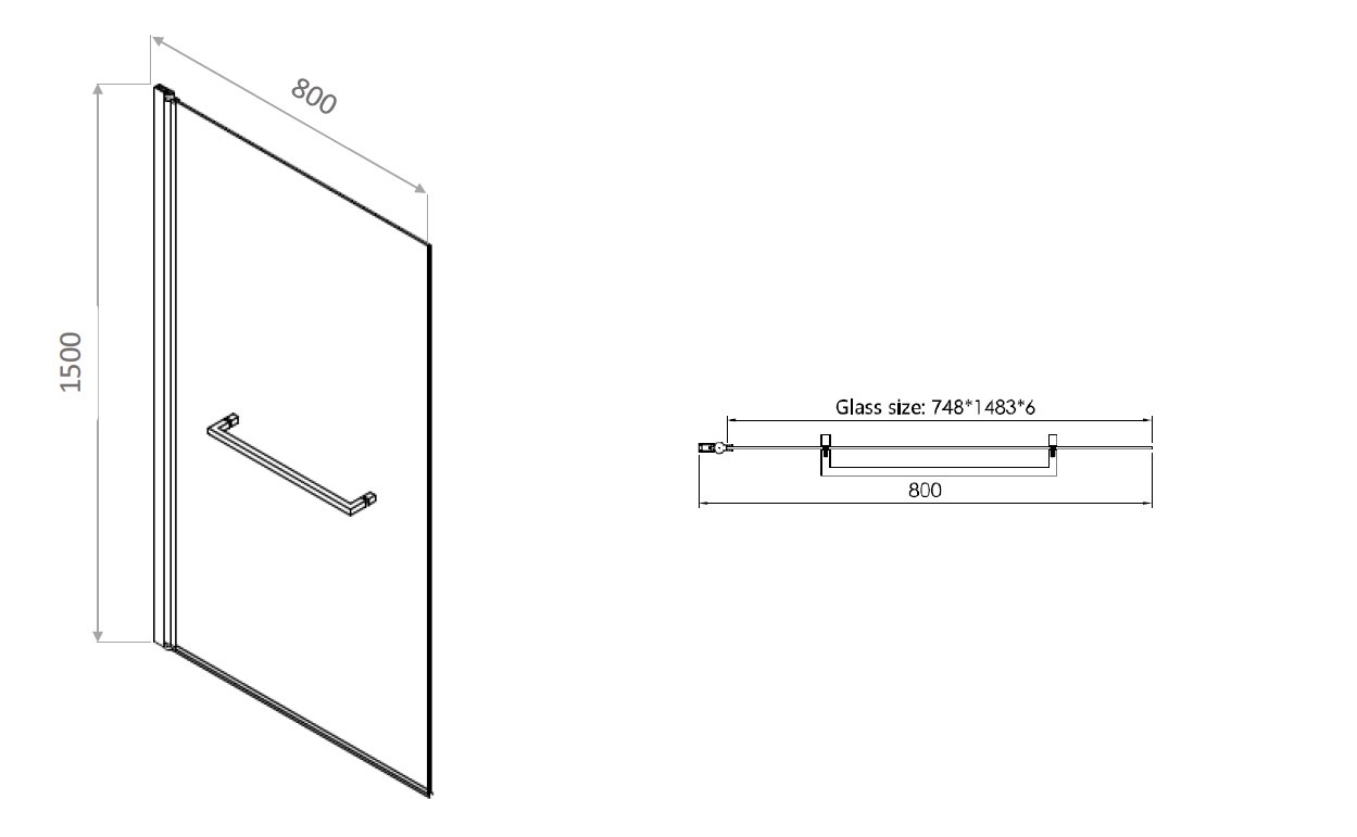 Шторка для ванны Allen Brau Priority 800х1500 мм 3.31022.BBA, распашная, стекло прозрачное 6 мм, профиль чёрный брашированный.