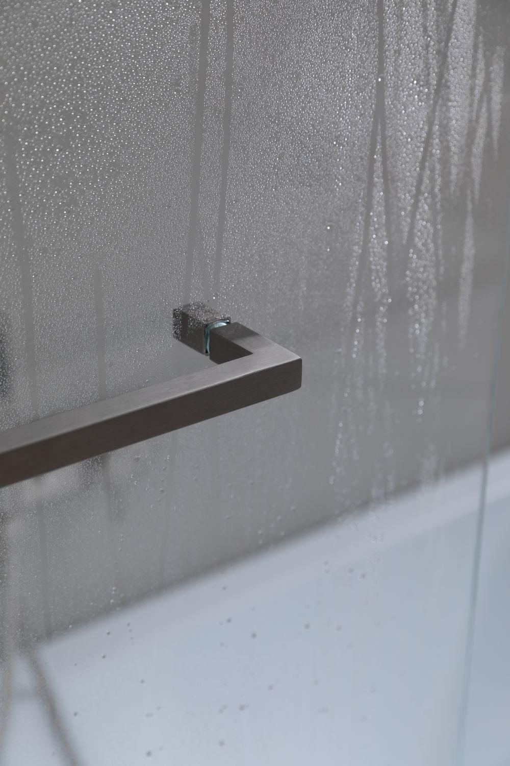 - Поверхность стекла обработана невидимым невооруженным глазом полимерным защитным слоем EasyClean, который препятствует образованию подтеков и надолго оставляет шторку чистой, к тому же, облегчает приведение стеклянной поверхности в порядок.