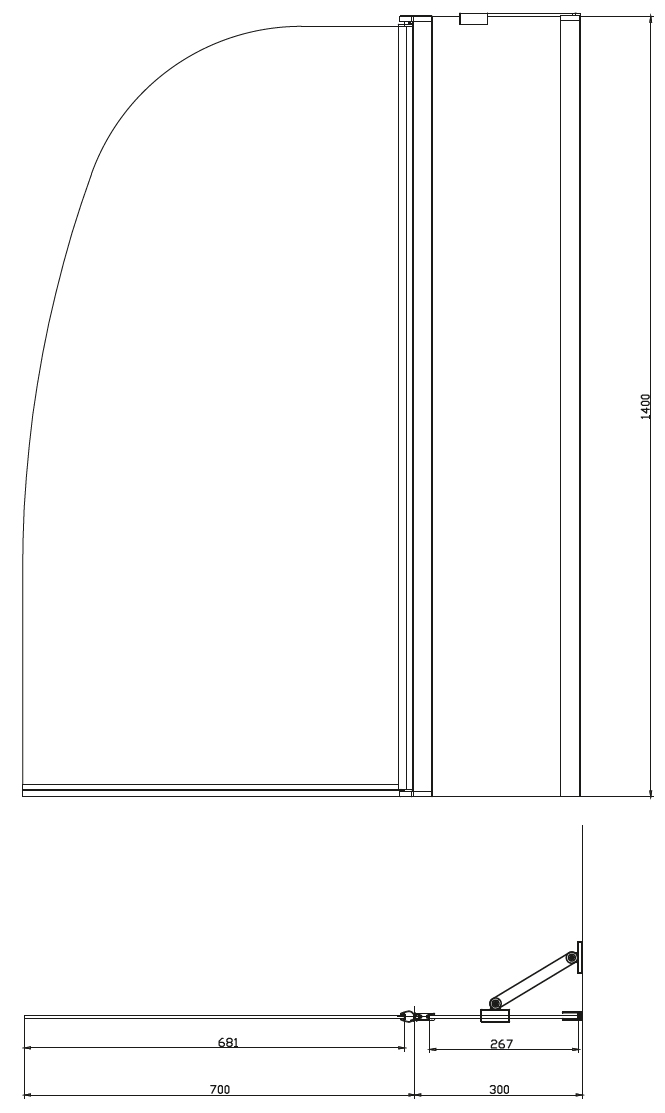 Душевая шторка на ванну AZ-142 (70+30)*140 Цвет профиля хром, 6мм прозрачное стекло
