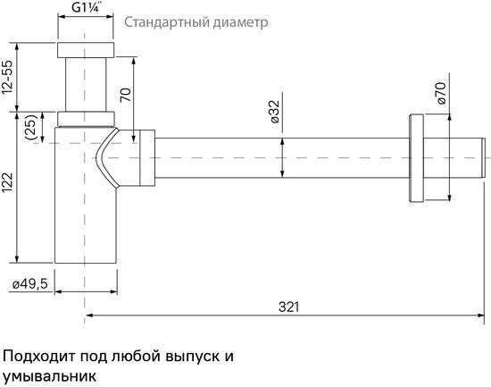 - Монтаж сифона прост и удобен: высота вывода канализации и высота установки умывальника могут быть отрегулированы в пределах 12-55 мм.