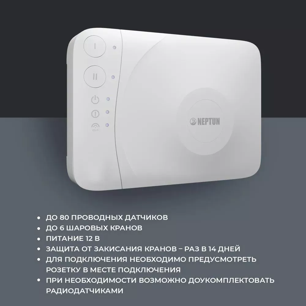 - Автоматическая блокировка водоснабжения при срабатывании любого датчика.