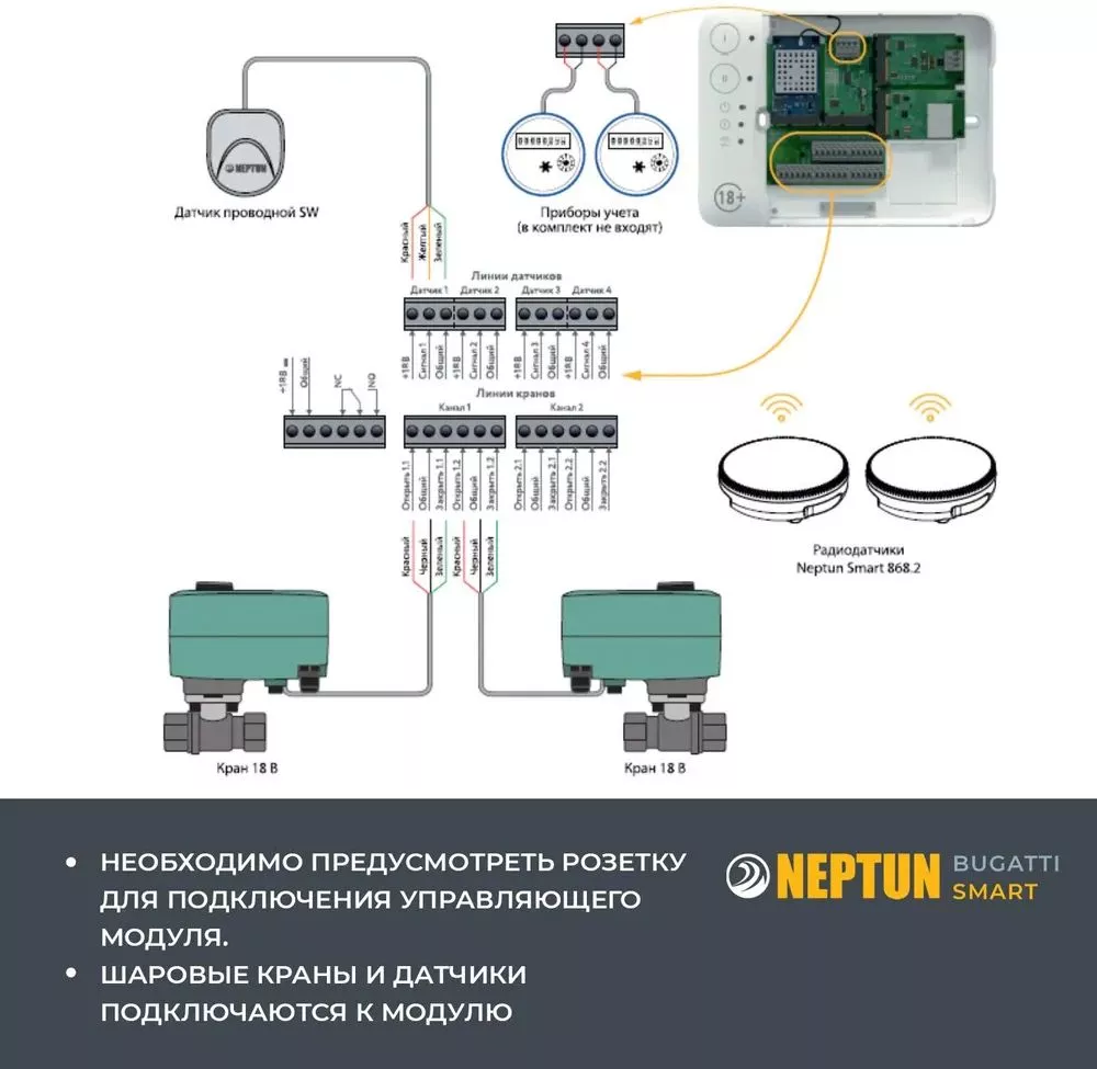 - Радиодатчики (для организации соединения с датчиками Neptun Smart 868).