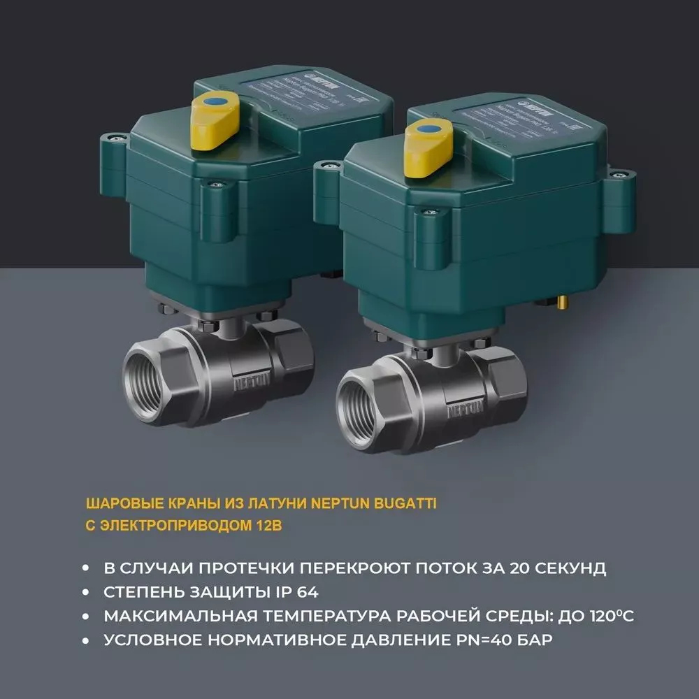 - Кран шаровый с электроприводом Neptun Bugatti Pro 12В - 2 шт.