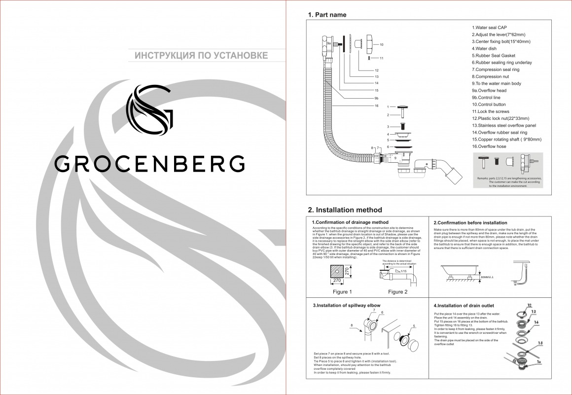Слив-перелив полуавтоматический для ванны Grocenberg GB240CR