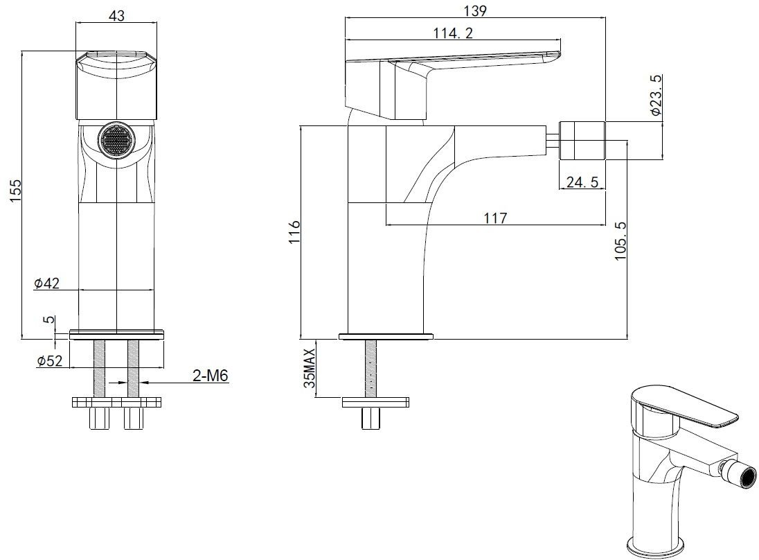 Характеристики смеситель для биде Allen Brau (5.E1A10-00)