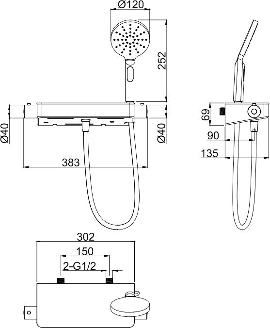 - Шланг для душа: 1,5 м PVC (EPDM inside, anti-twist, brass nut)