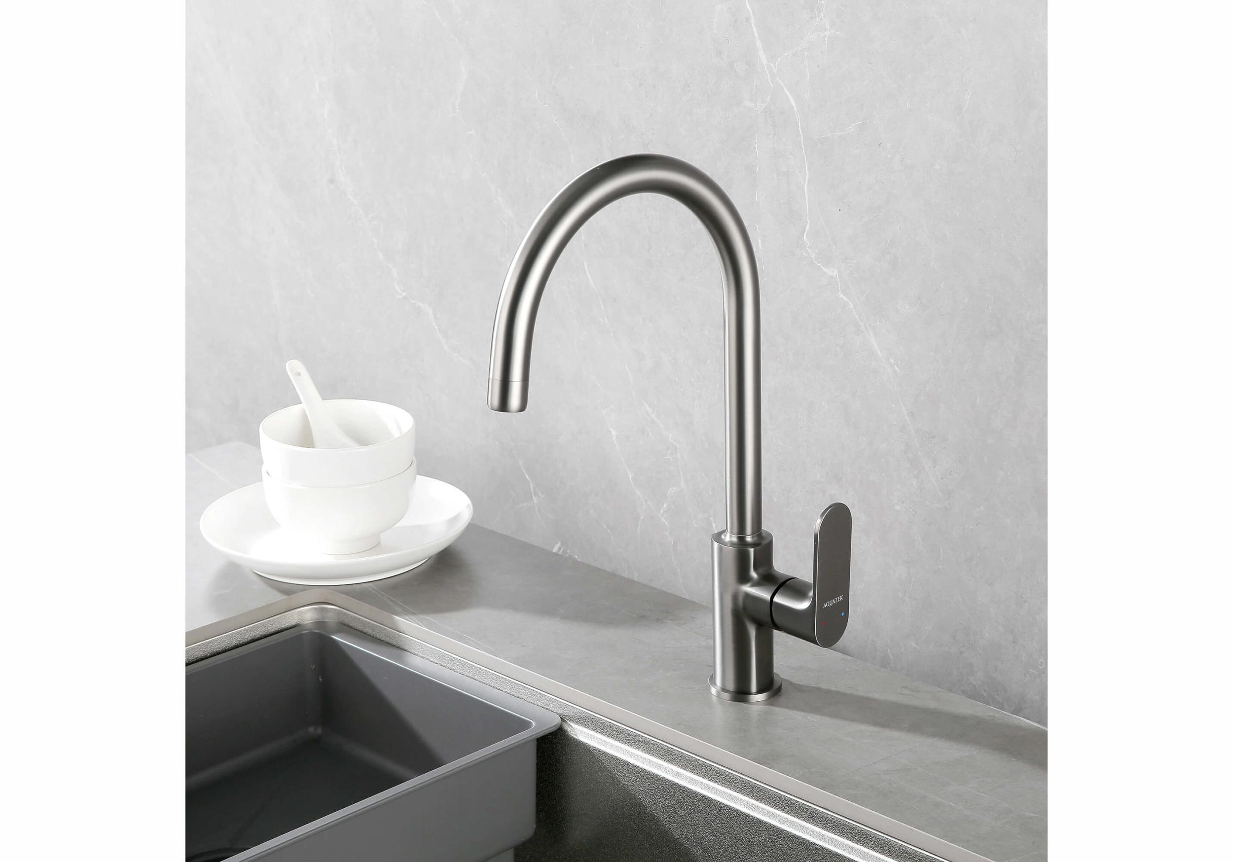 Смеситель для кухни Aquatek Альфа AQ1982BGM, материал нержавеющая сталь, цвет оружейная сталь.