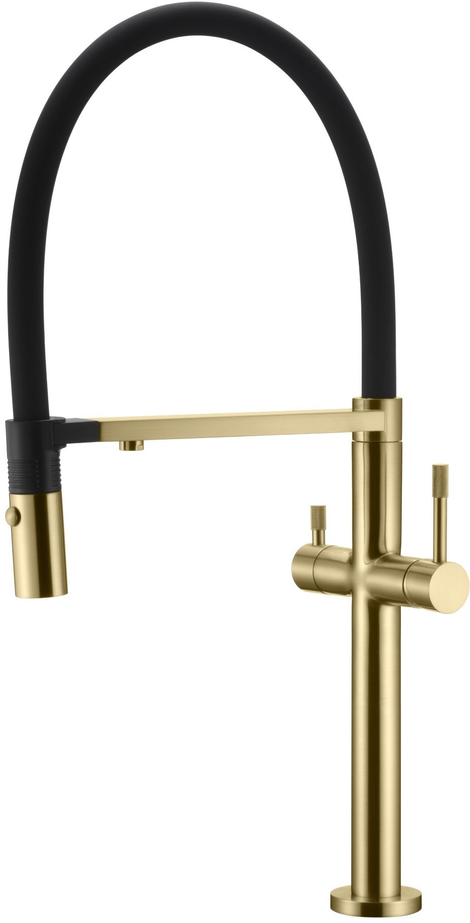 Смеситель для кухни Boheme Uno 115-MG с гибким и поворотным изливом, материал латунь/силикон, цвет золото матовое.