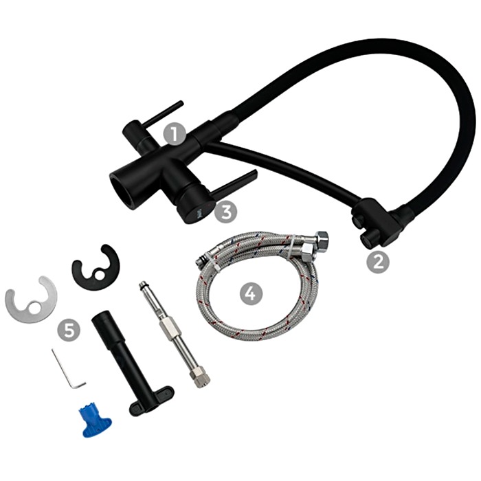 Смеситель для кухни Gappo G4398-16 с гибким, поворотным изливом и подключением фильтра питьевой воды , материал - латунь, цвет - черный.