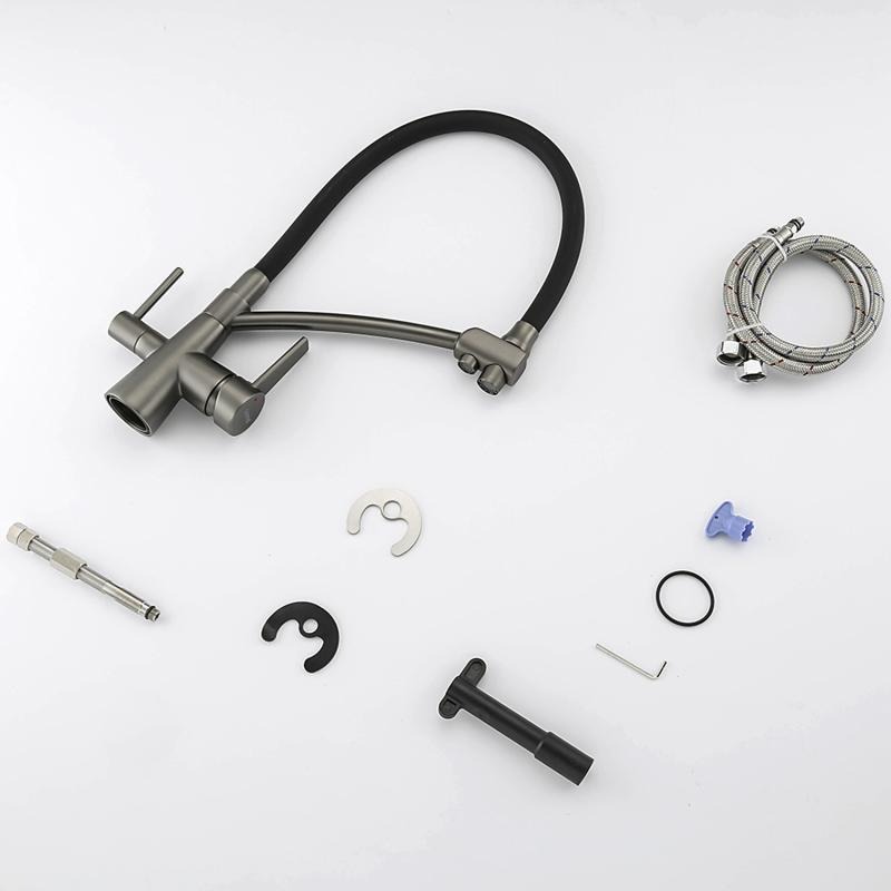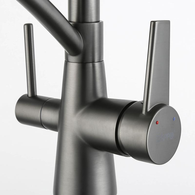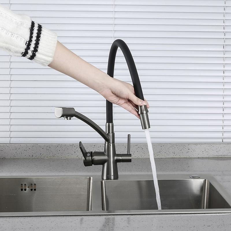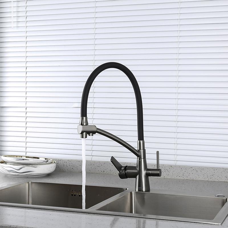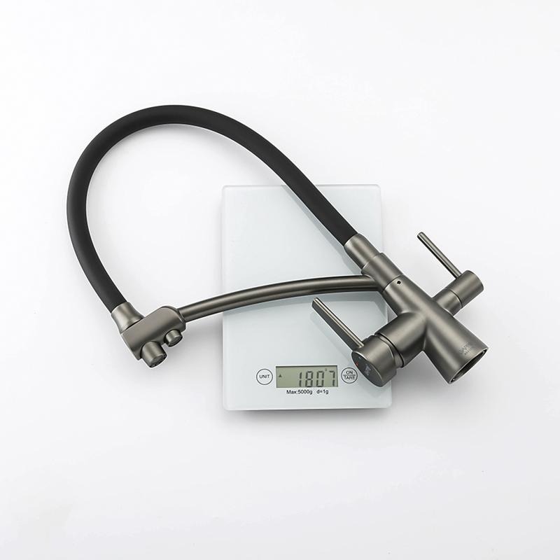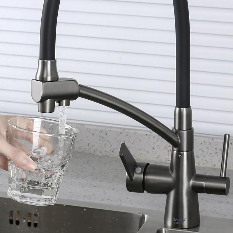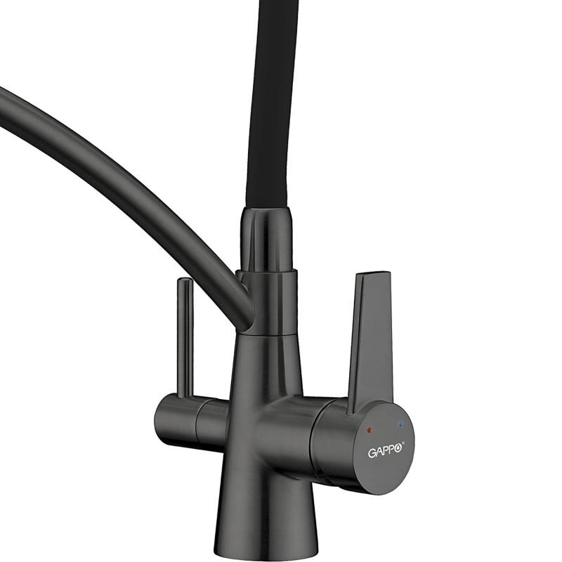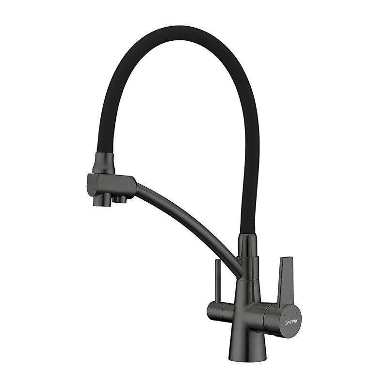 Смеситель для кухни Gappo G4398-19 с гибким изливом и подключением фильтра питьевой воды, материал - латунь/силикон, цвет - оружейная сталь.