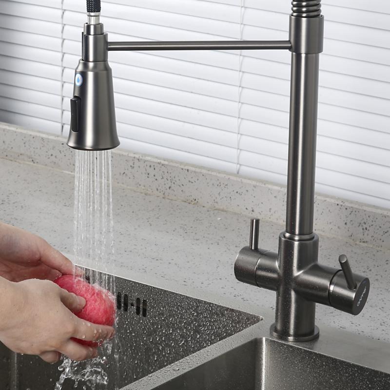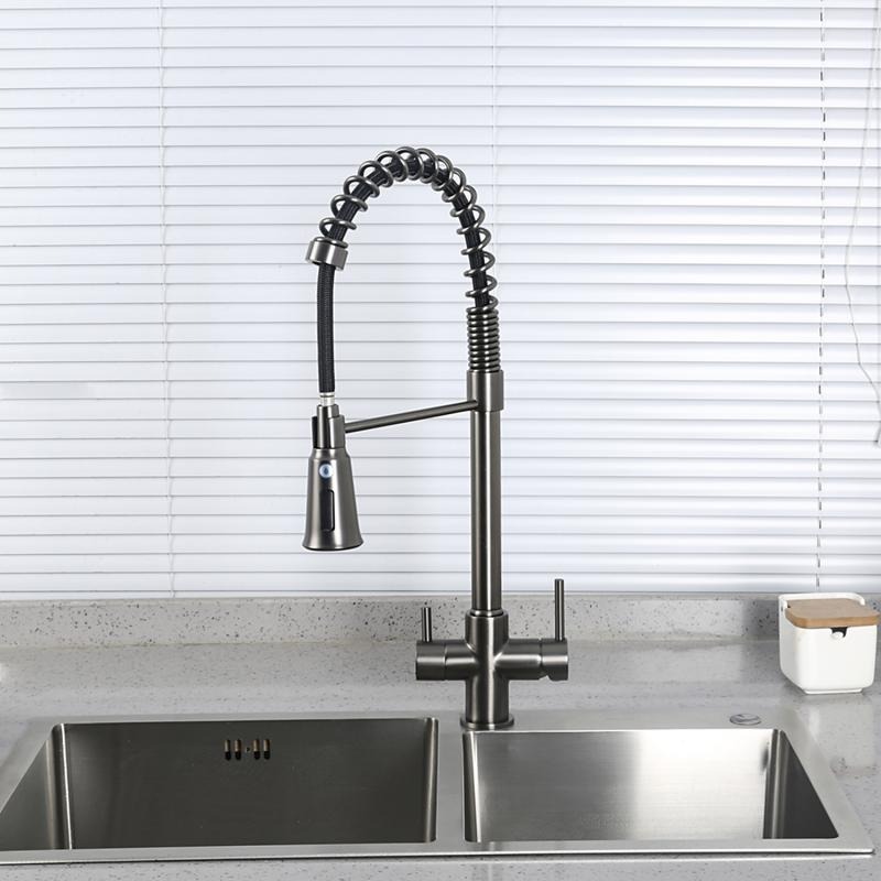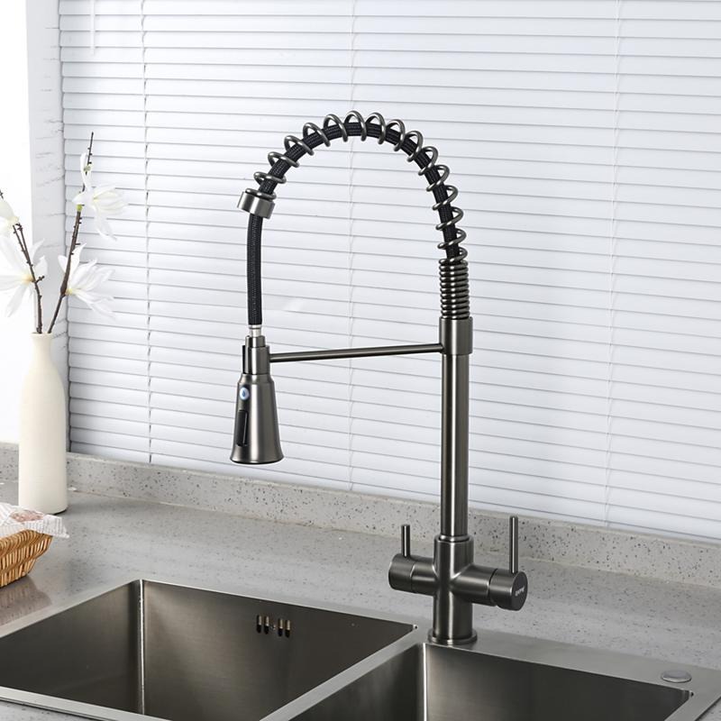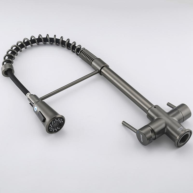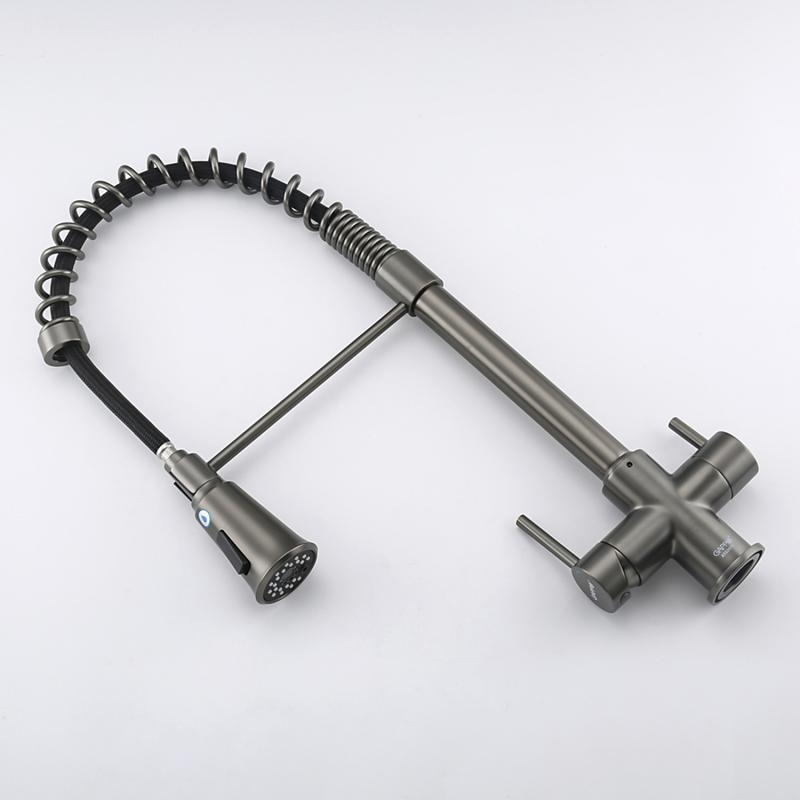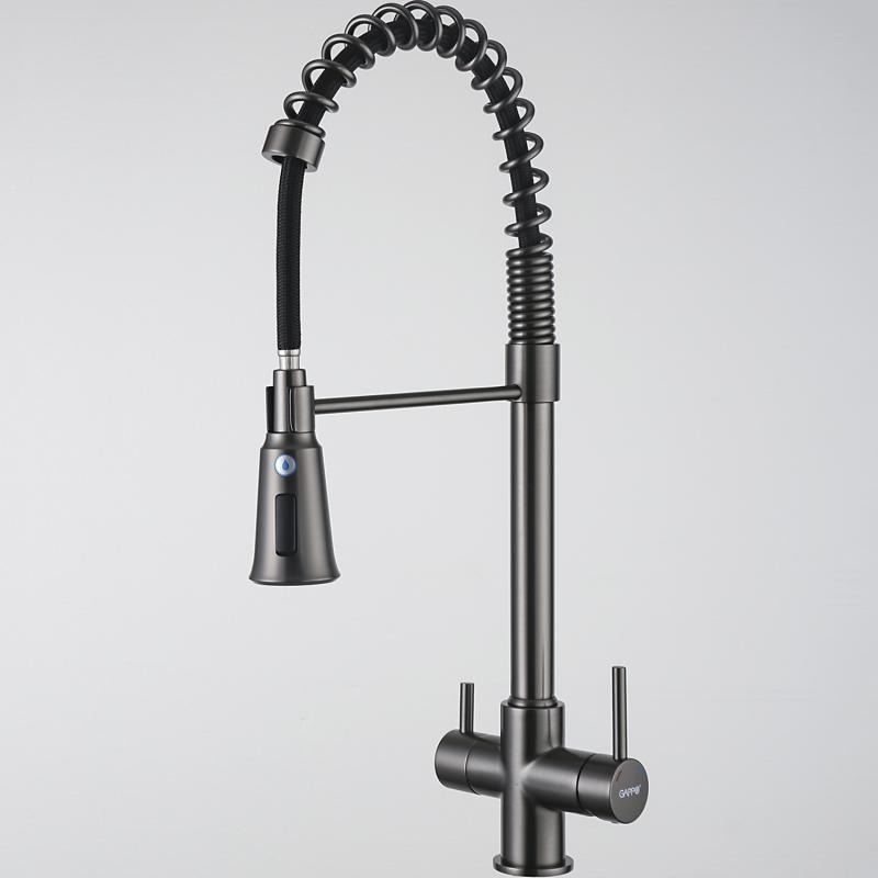 Смеситель для кухни Gappo G4398-69 с гибким изливом и подключением фильтра, материал - латунь, цвет - оружейная сталь.