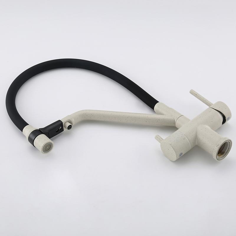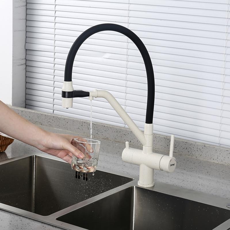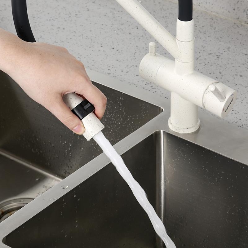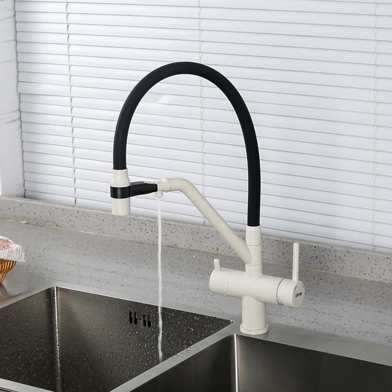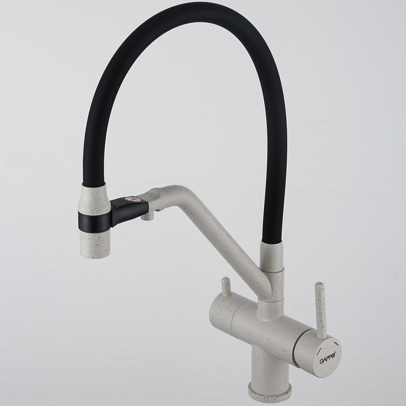 Смеситель для кухни Gappo G4398-81 с гибким изливом и подключением фильтра, материал - латунь, цвет - белый/черный.