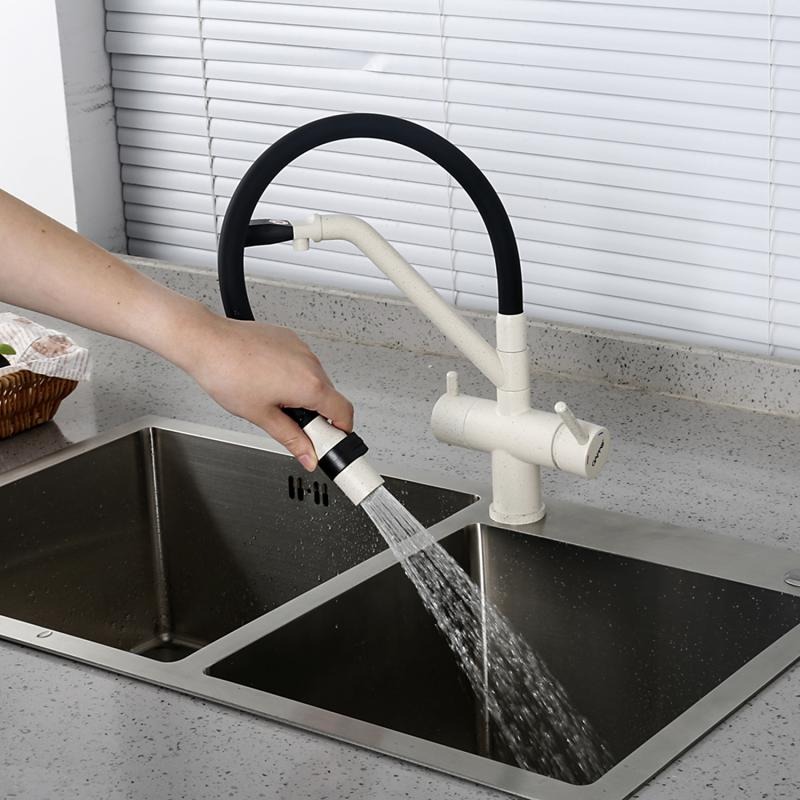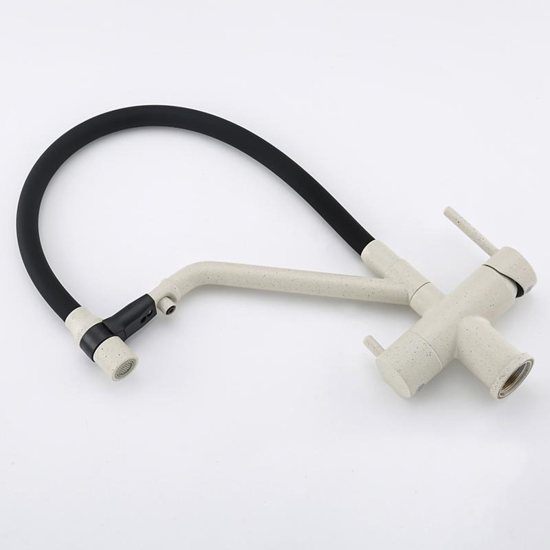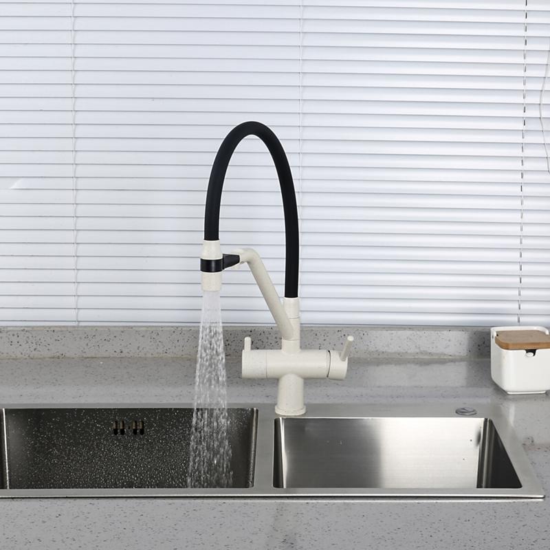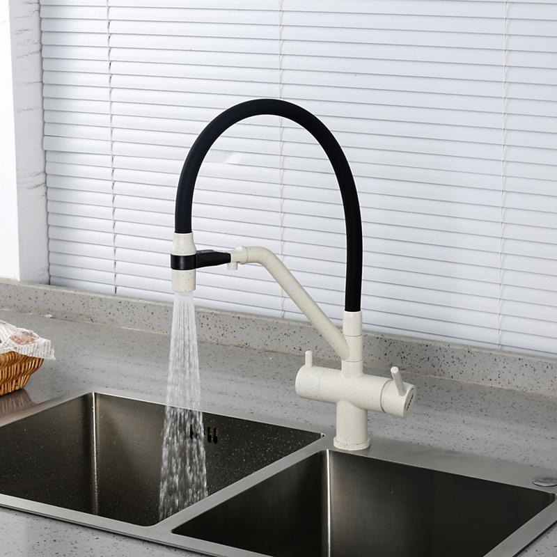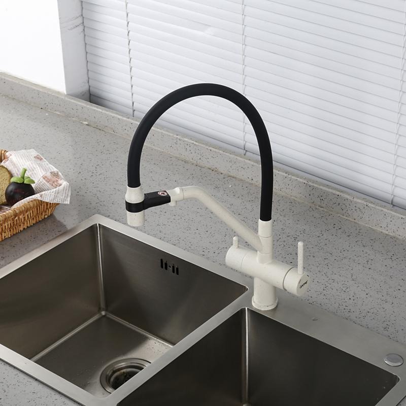 Смеситель для кухни Gappo G4398-81 с гибким изливом и подключением фильтра, материал - латунь, цвет - белый/черный.