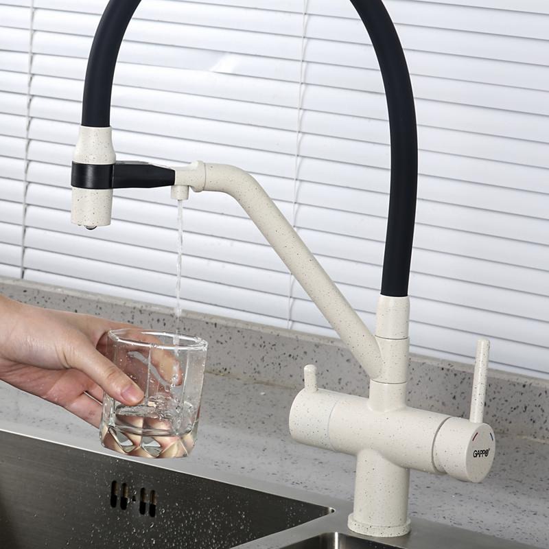 Описание смеситель для кухни с подключением фильтра,смеситель для кухни с гибким изливом Gappo G4398-81