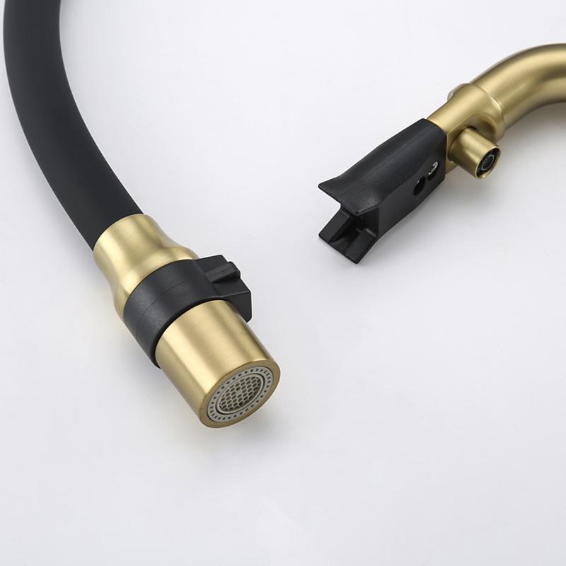 Смеситель для кухни Gappo G4398-83 с гибким изливом и подключением фильтра, материал - латунь, цвет - золото/черный.