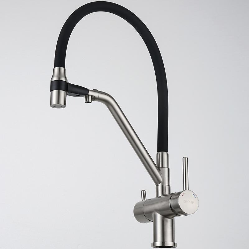 Смеситель для кухни Gappo G4398-85 с гибким изливом и подключением фильтра, материал - латунь, цвет - сатин/черный.