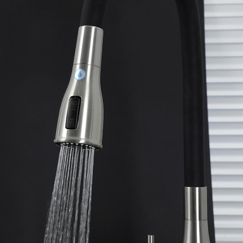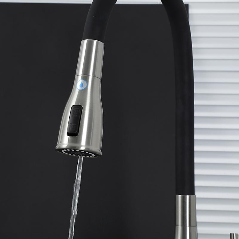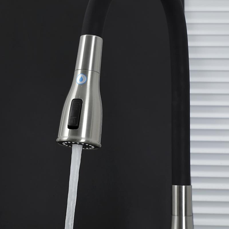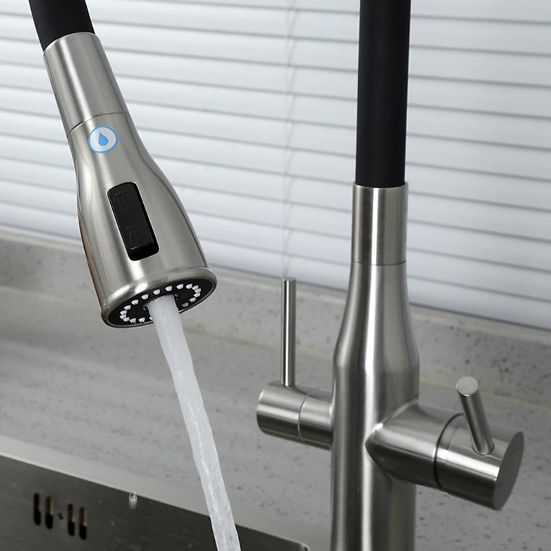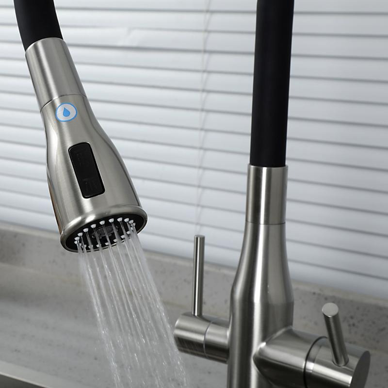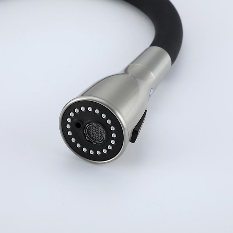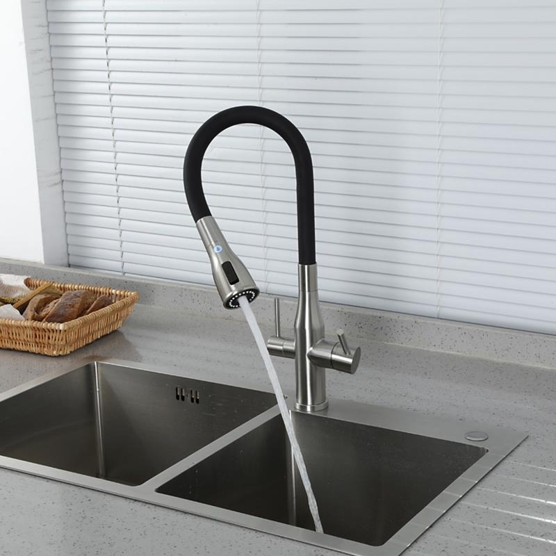 Смеситель для кухни Gappo G4399-65 с гибким изливом и подключением фильтра, материал - латунь, цвет - сатин/черный.
