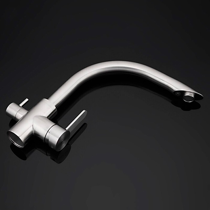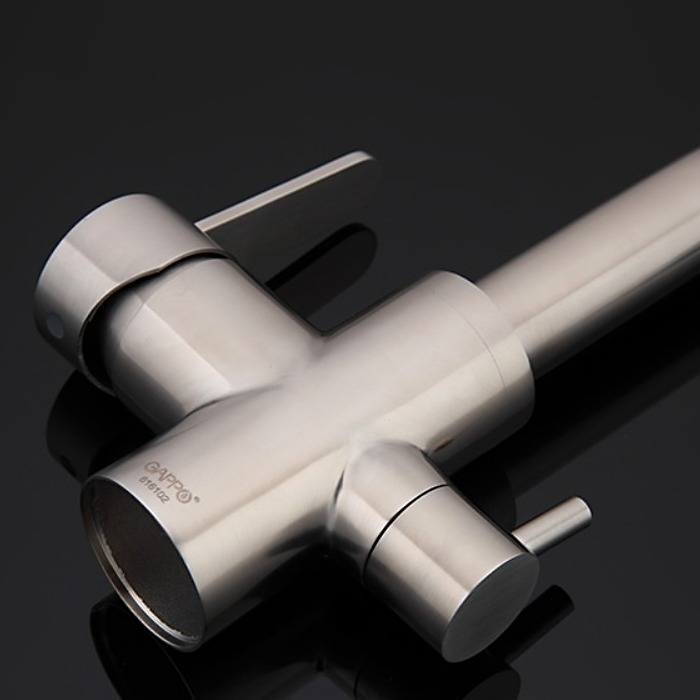 Смеситель для кухни Gappo G4399 с поворотным изливом и подключением фильтра питьевой воды , материал - нержавеющая сталь, цвет - сатин.