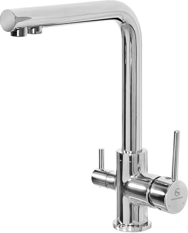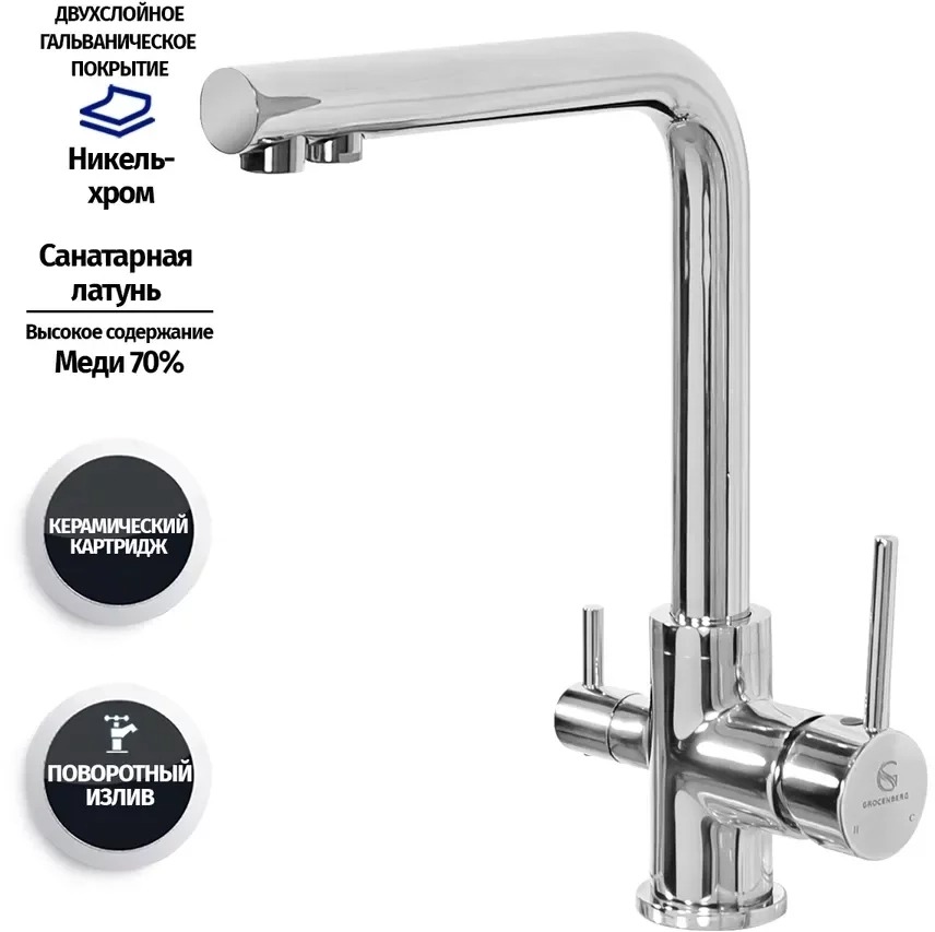 Смеситель для кухни Grocenberg GB40551CR с подключением фильтра и поворотным изливом, материал - латунь, цвет - хром.