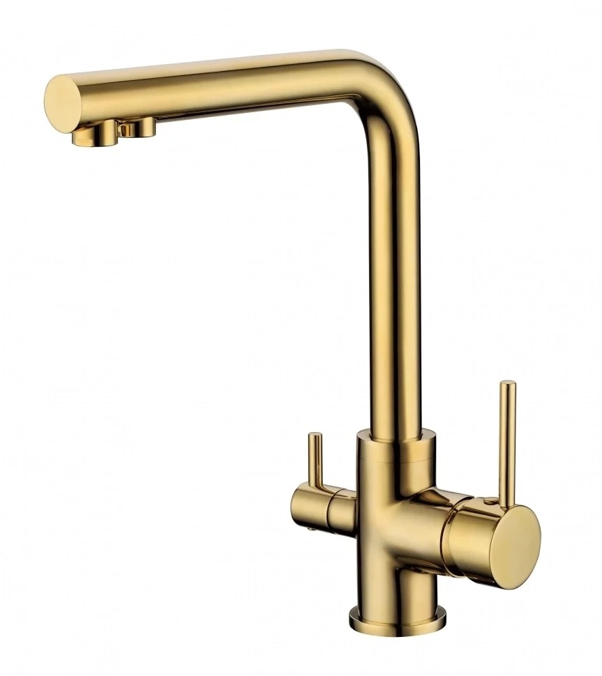 Смеситель для кухни Grocenberg GB40551GO с подключением фильтра и поворотным изливом, материал - латунь, цвет - золото.