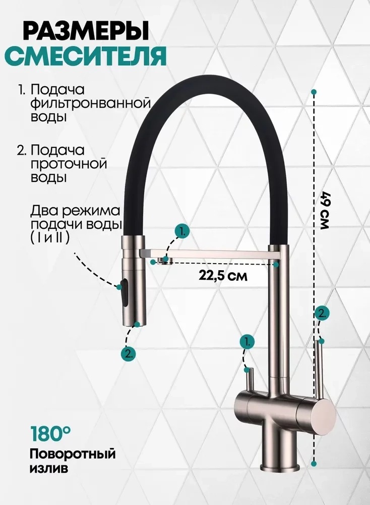 Описание смеситель для кухни с подключением фильтра,смеситель для кухни с гибким изливом Grocenberg GB4096NK